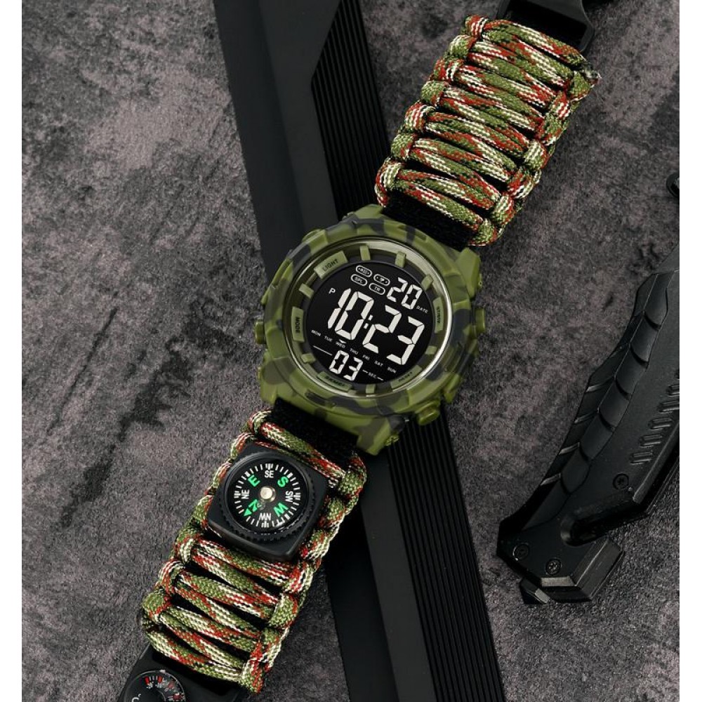 Часы наручные 1845NCMGN SKMEI PARACORD, ARMY GREEN CAMOUFLAGE, Compass, термометр, свисток, кресало