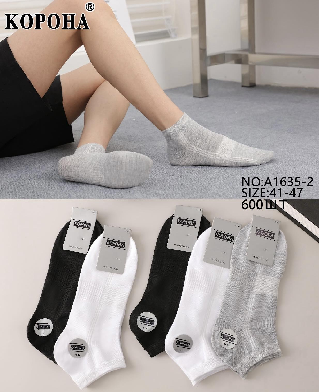 Носки ШУГУАН ликра хлопок патик ( низкие ) сетка мужская 40-45. Цвет : ассорти