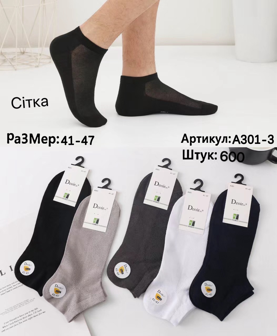 Носки DEOIR ликра патик (низкая) сетка 41-47 с модальной нити. Цвет: ассорти