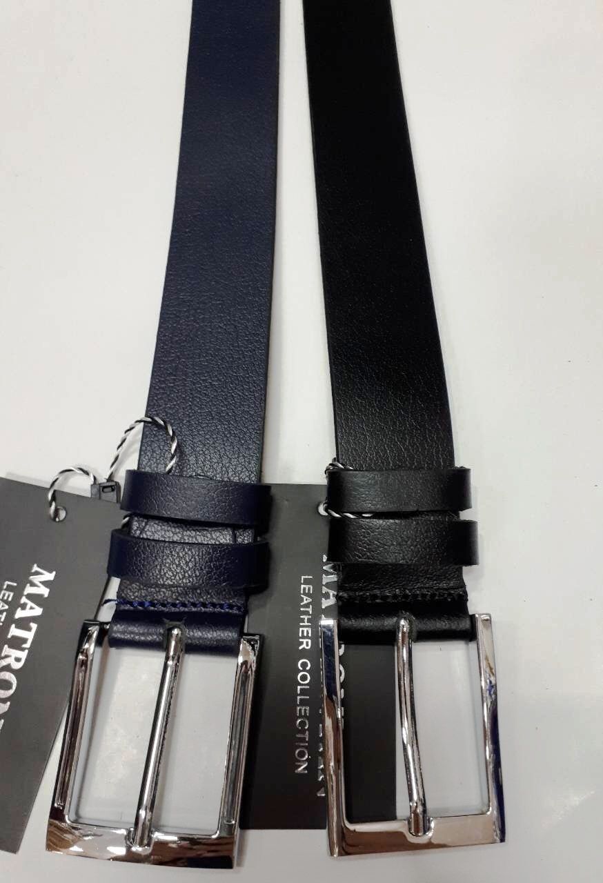 Ремень мужской кожаный гладкий классика, цвет синий и черный, ширина 3.5 см
