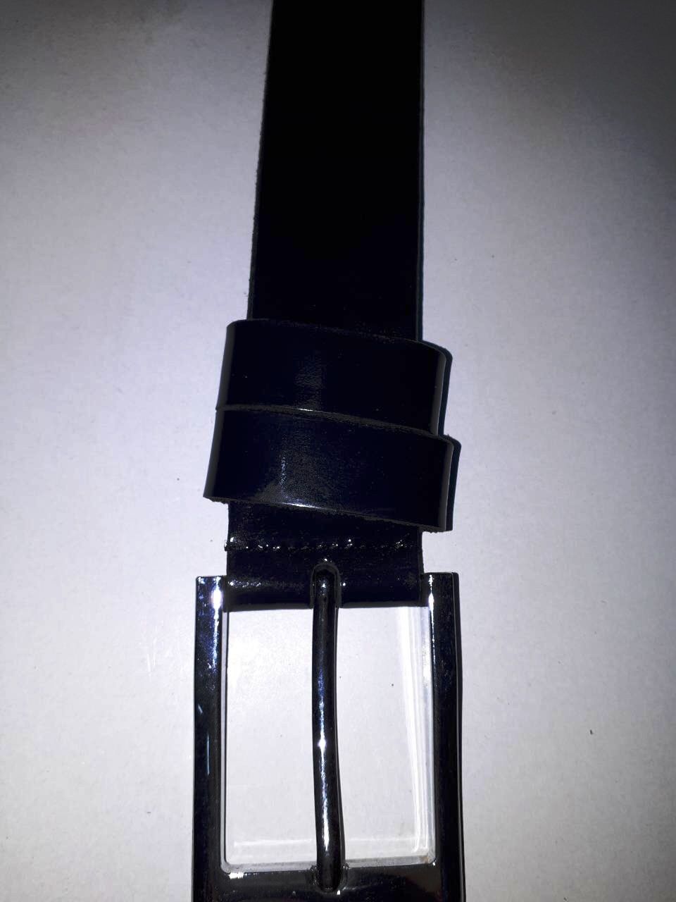 Ремень мужской кожаный лаковый, синий, ширина 3.5 см, Украина