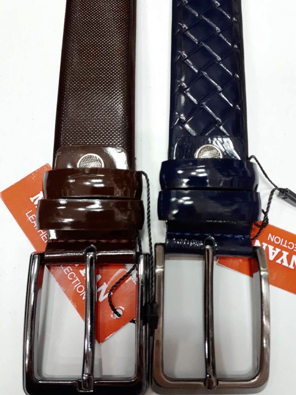 Ремень мужской лаковый, Турция, синий и коричневый, ширина 3.5 см
