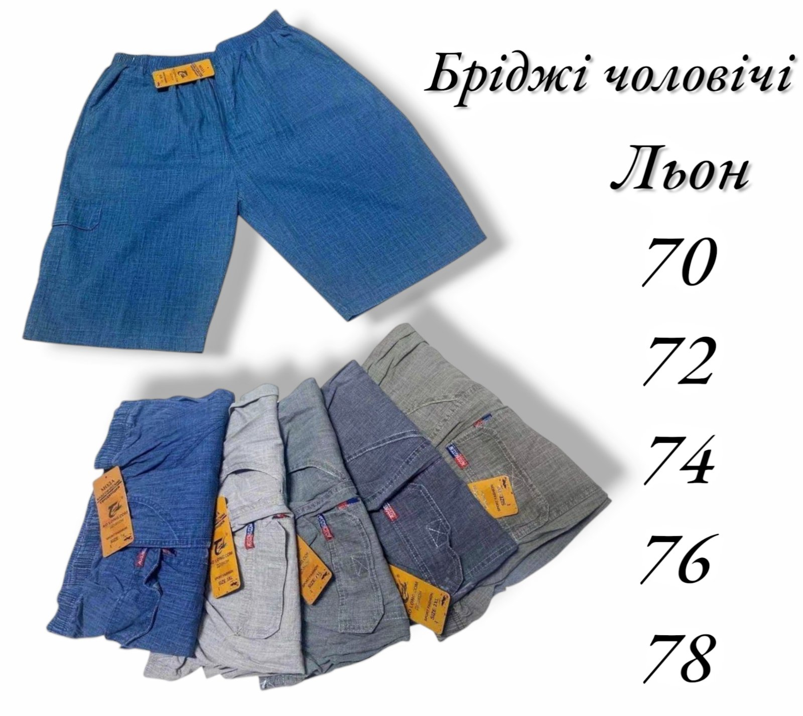 Бріджі чоловічі льняні. Фірми AO. Long. Батал. Мають додаткову бокову кишеню. Розміри: 70, 72, 74, 76, 78.