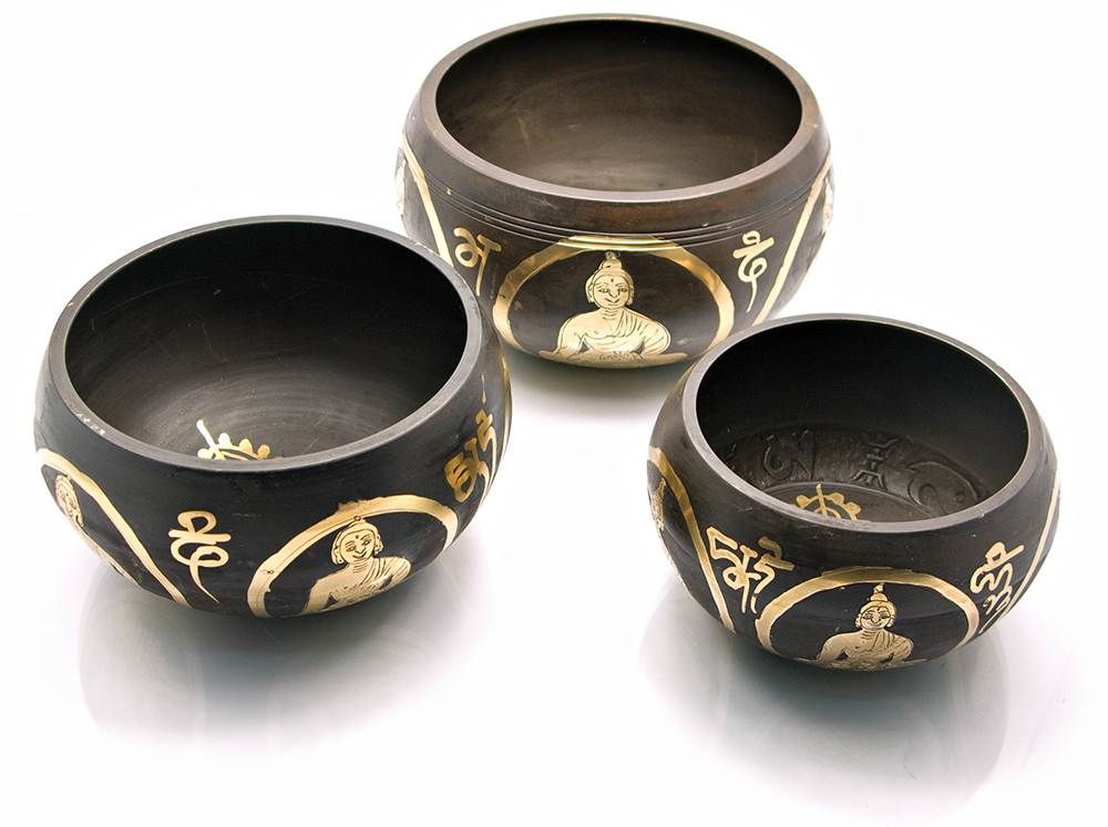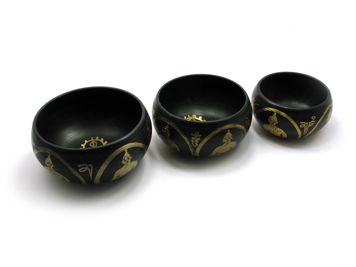 Чаши поющие Будда (н-р 3 шт)(d-11.5.h-7 см)(d-13.5.h-7 см)(d-15.h-7.5 см) код 27373