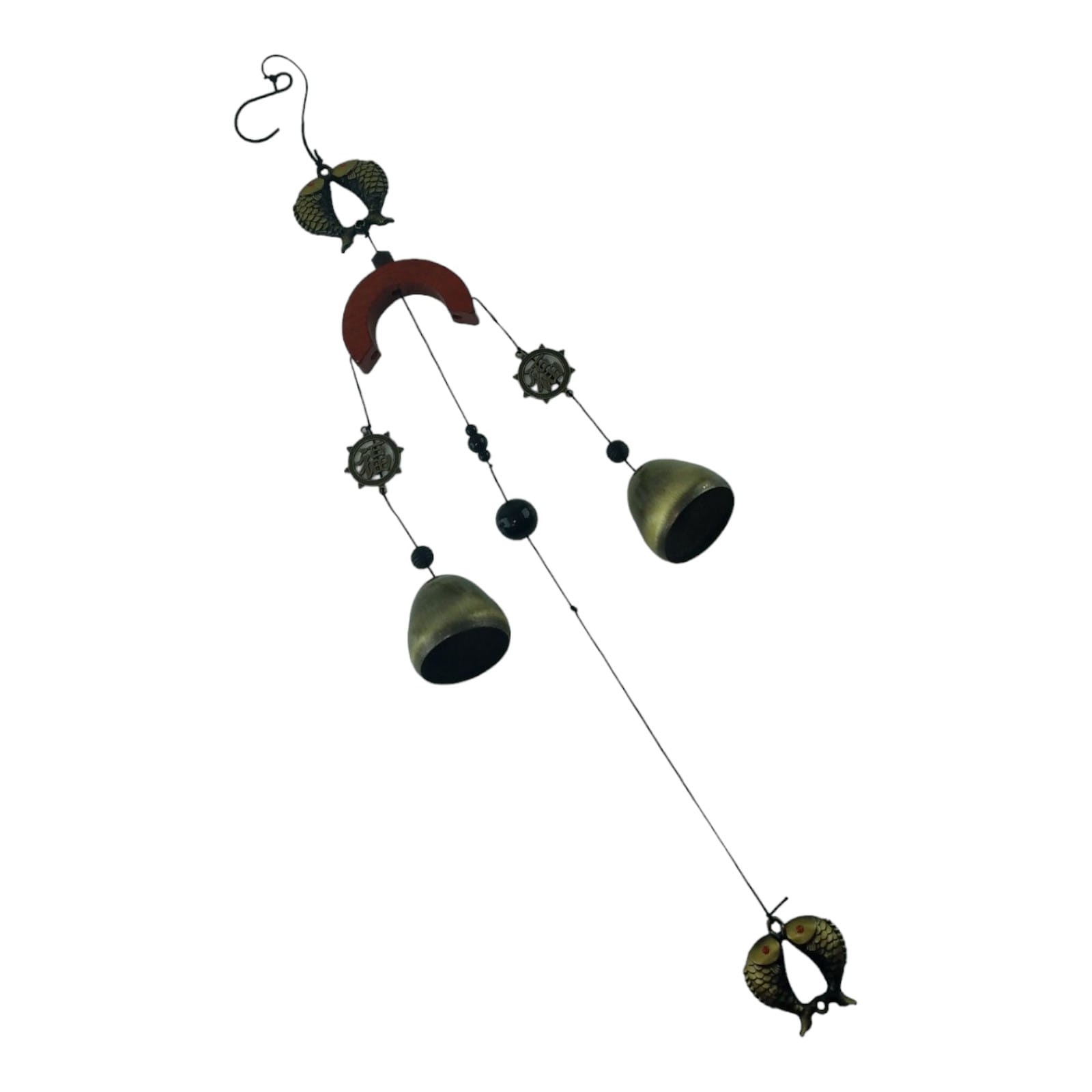 Начиная свой путь в мире звуков, наша подвеска оснащена крючком для подвеса длиной 50 мм, который обеспечивает ее надежное крепление. Далее следуют две изящные рыбки из металла, размером 60х59х7 мм, напоминающие о волшебном мире моря.