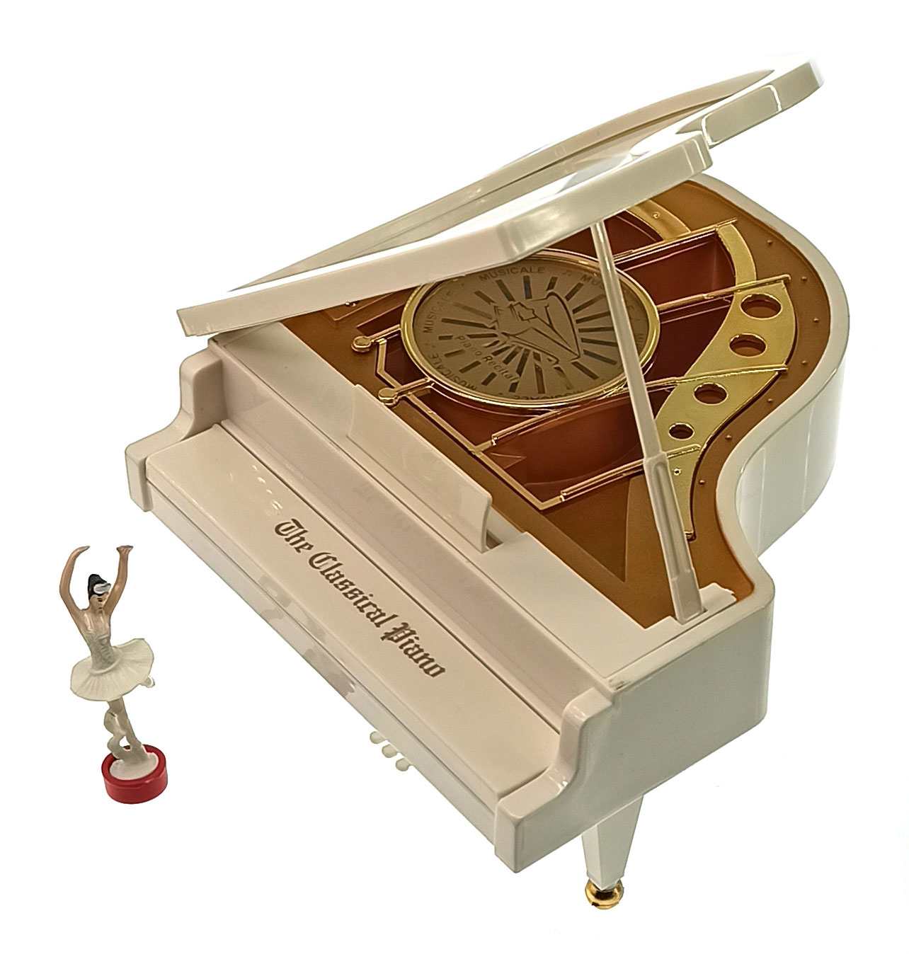 Музыкальная игрушка выполненная в форме рояля, заводится вручную. Утонченные формы, оригинальный дизайн не оставят никого равно душным. Рояль украсит интерьер Вашей гостиной, детской комнаты, внесет изюминку в общий антураж на дамском столике.Приобретая эту музыкальную игрушку, Вы получите возможность мысленно отправиться в детство хотя бы на несколько мгновений !