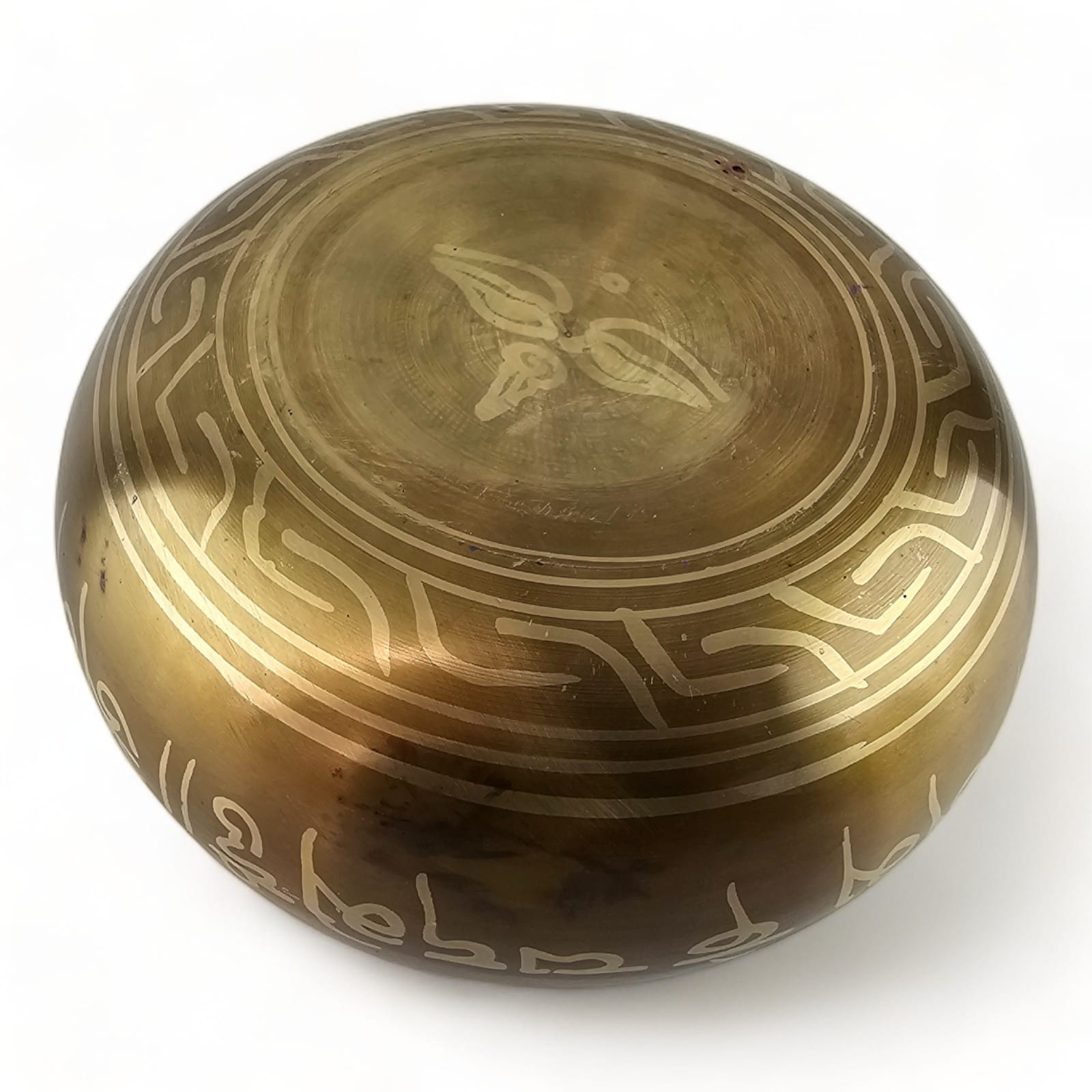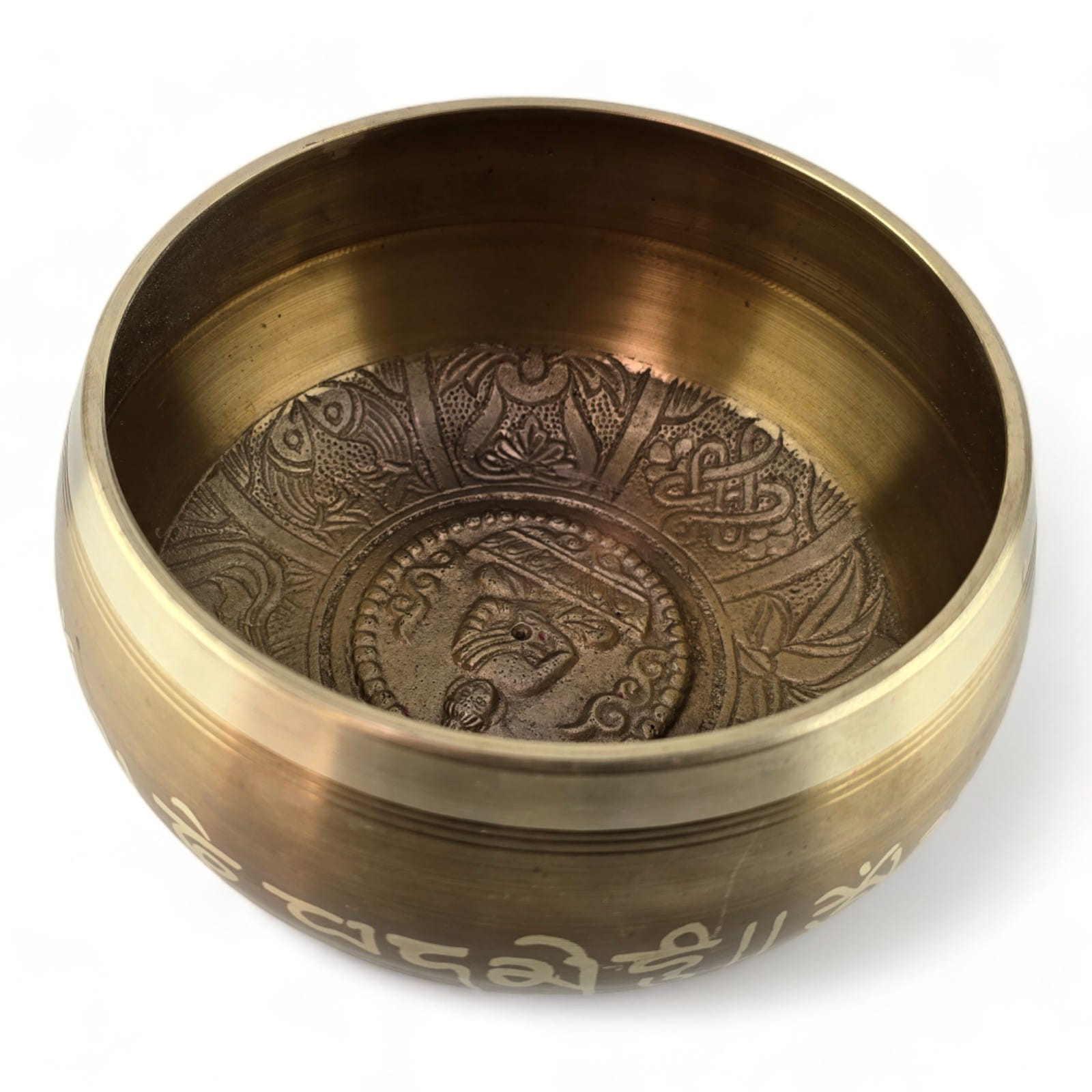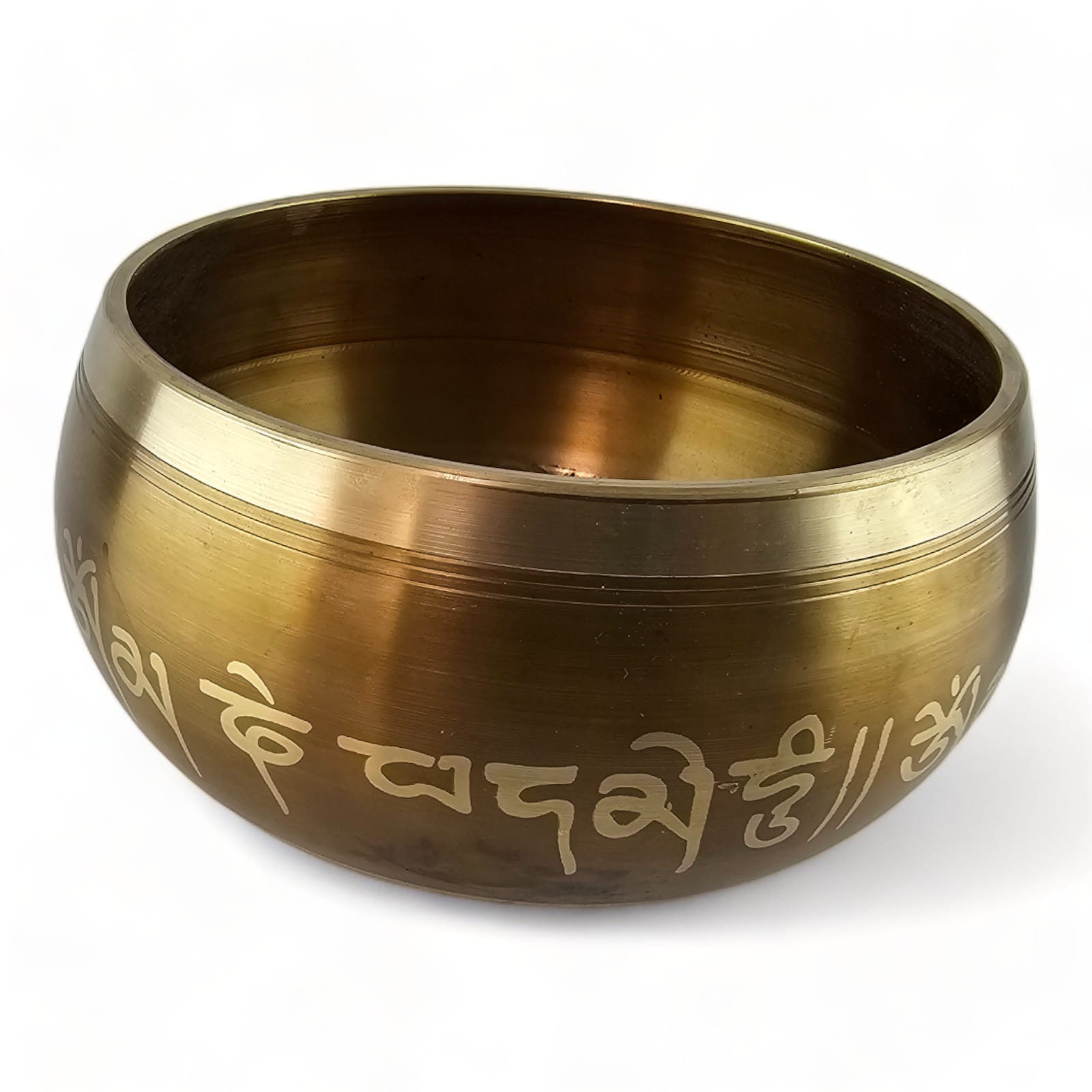 Кроме того, по бокам чаши написаны мантры на санскрите. Эти священные слова, которые часто используются в медитационных практиках, добавляют чаше энергии и укрепляют духовную связь с Вселенной. Они создают атмосферу глубокого покоя и контемпляции, помогая практикующему сосредоточиться и усвоить глубокие духовные уроки.