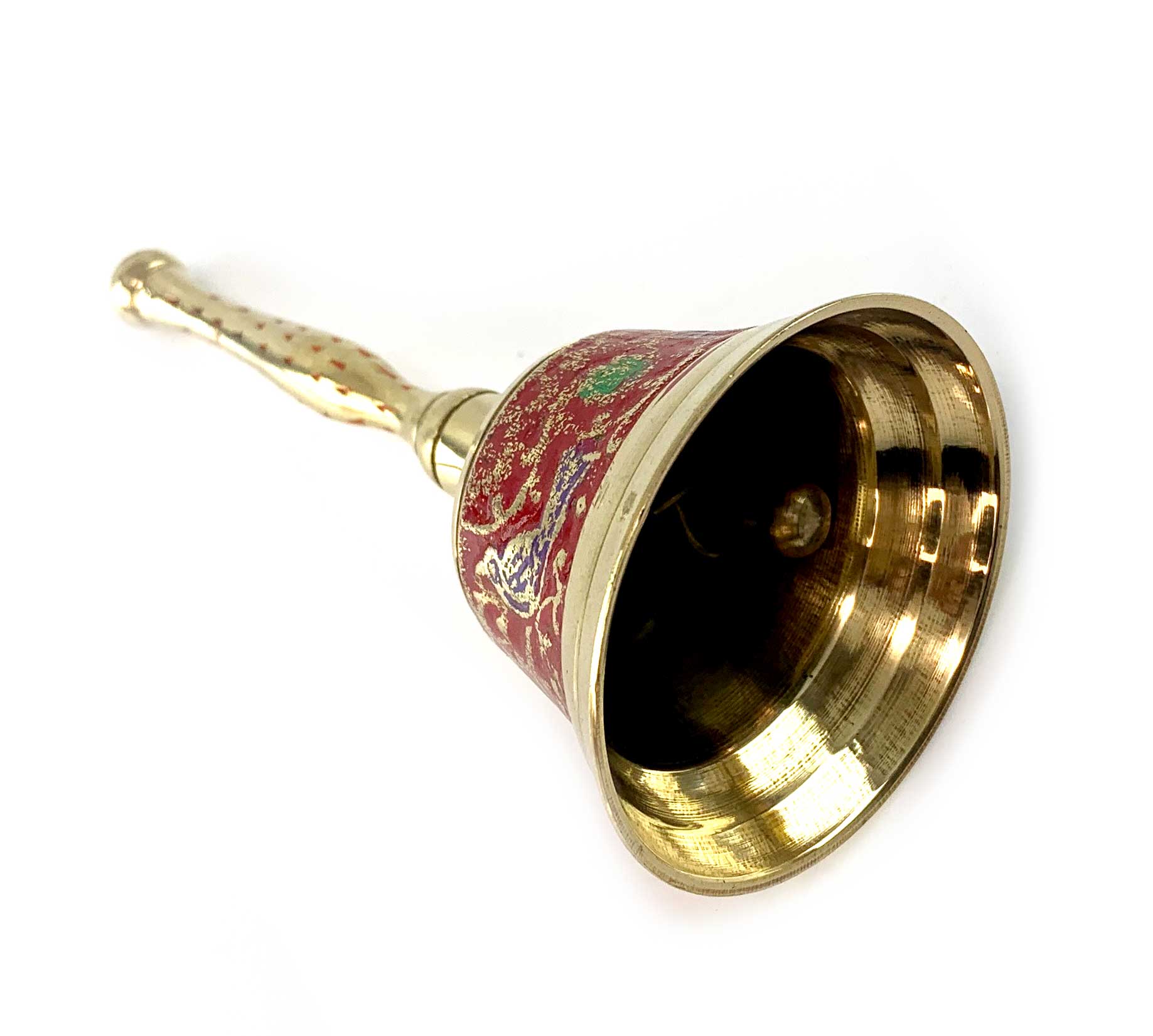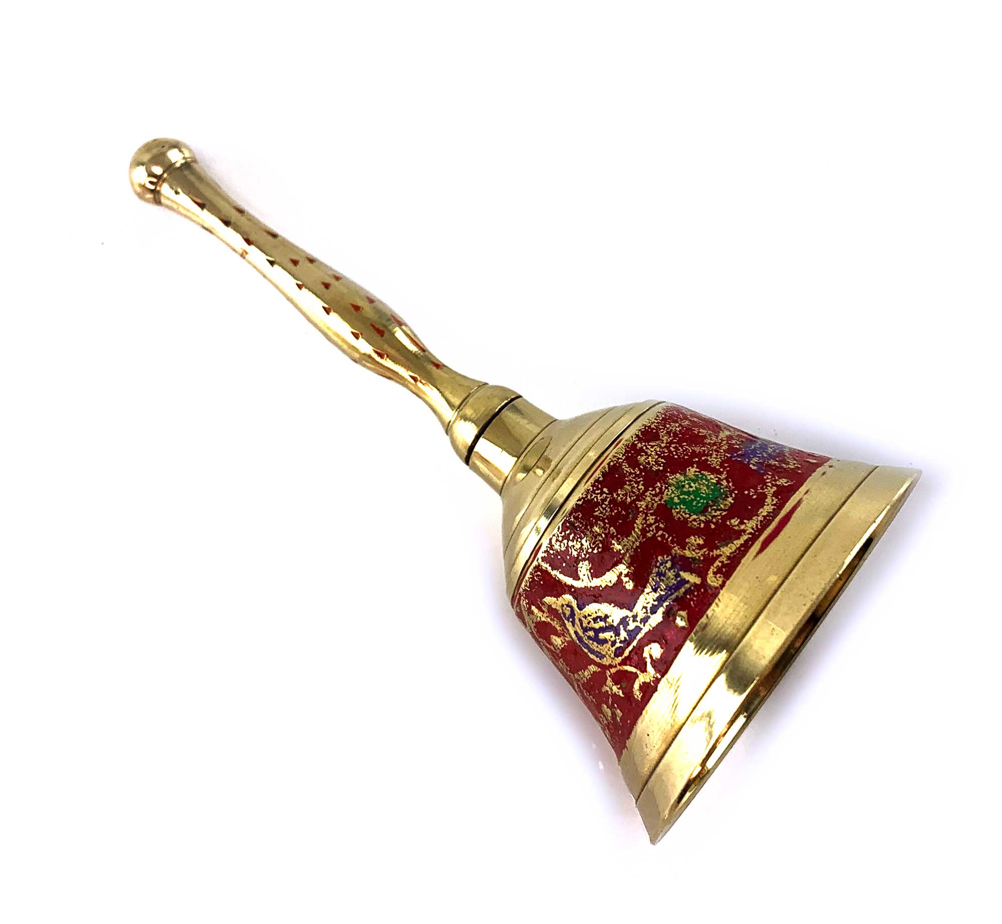 Колокольчик с ручкой с рисунком бронзовый Птицы на красном фоне (12,5х6 см)