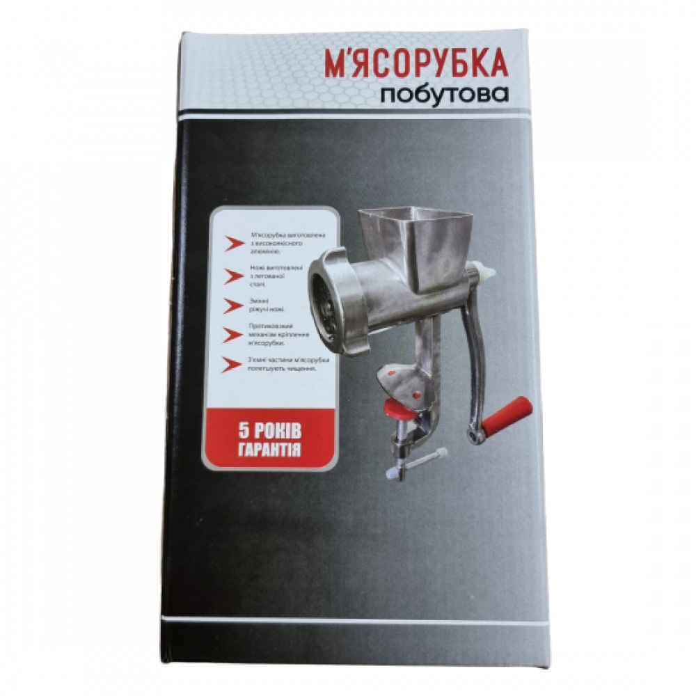 Это незаменимый прибор на кухне. Механическая мясорубка изготовлена из литого алюминиевого корпуса. Надежная и ручная мясорубка для измельчения мяса, рыбы, орехов и овощей. Корпус низа оснащен ножками с резиновыми накладками и винтовым зажимом. Винтовой зажим закручивается, плотно прижимает ножки к столешнице, что не дает прибору смещаться во время работы.