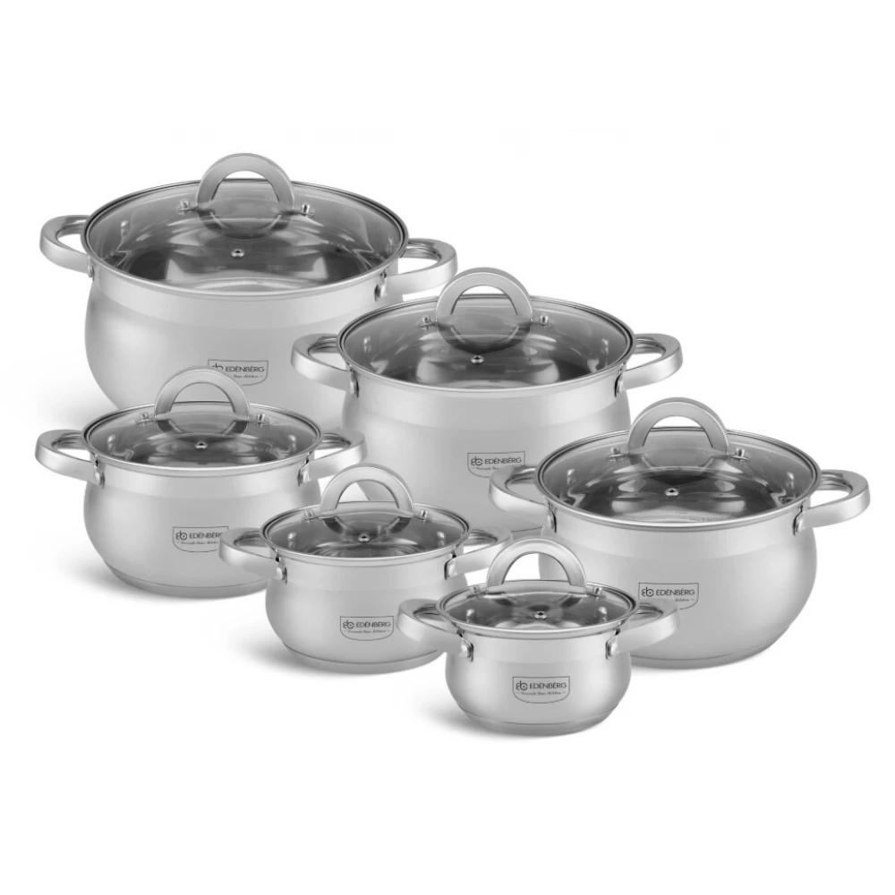 НАБОР ПОСУДЫ ИЗ 12 ПРЕДМЕТОВ (КАСТРЮЛИ) EDENBERG ИЗ НЕРЖАВЕЮЩЕЙ СТАЛИ EB-4065