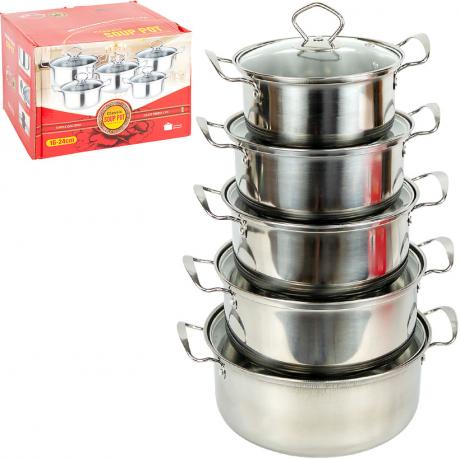 Комплектація: 5 каструль + 5 кришок (ручки для кришок окремо)