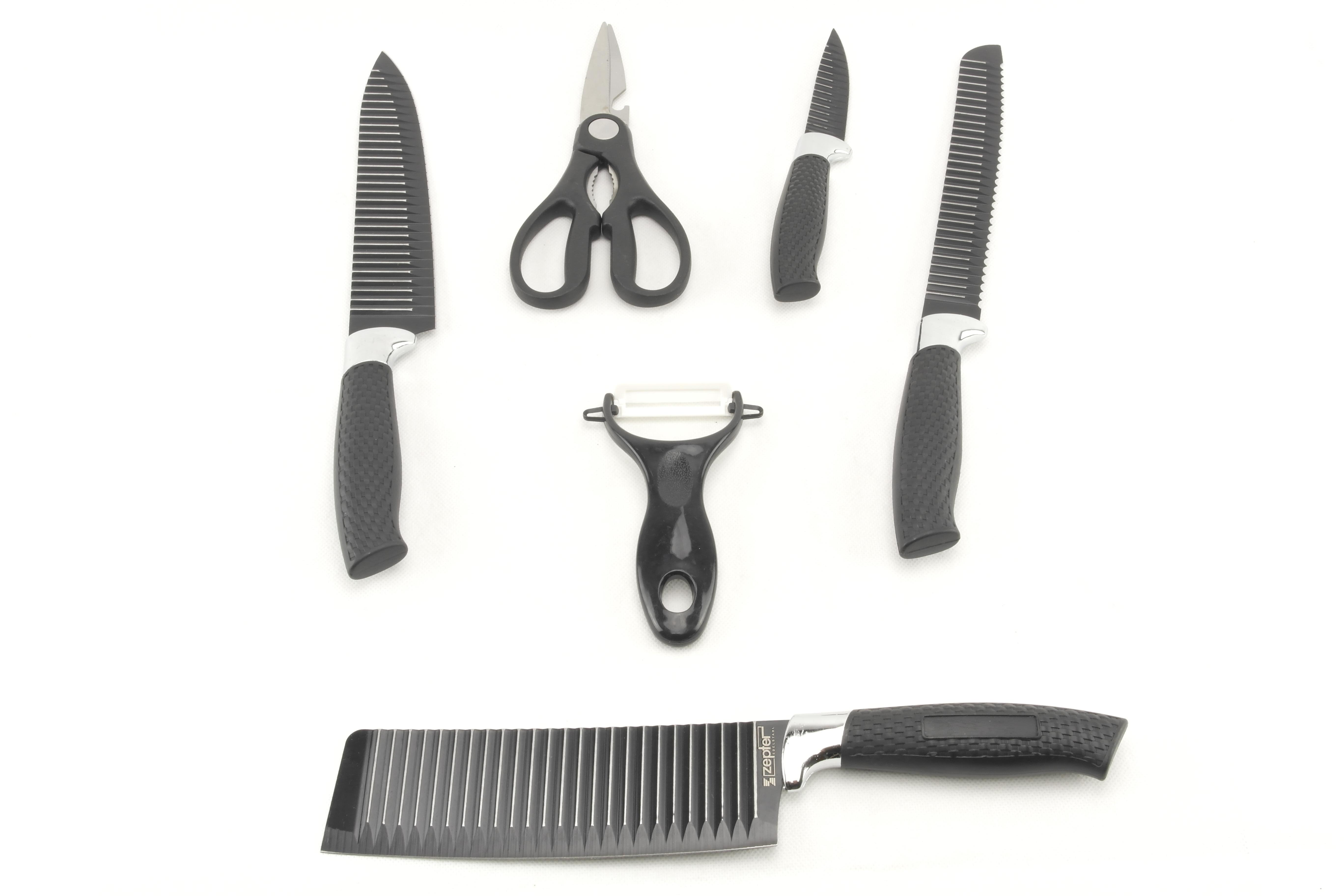 Кухонный нож необходим в каждом доме. Даже если Вы не готовите сами, то нарезать и почистить продукты без ножа невозможно. Предлагаем набор ножей, который сделает процесс приготовления пищи гораздо легче и приятнее. Приобретая его, Вы получаете ножи разного размера, но изготовленные в одном стиле, ножницы и овощечистку. Покупать ножи в наборе всегда дешевле, чем по отдельности. Набор состоит из 6 предметов.