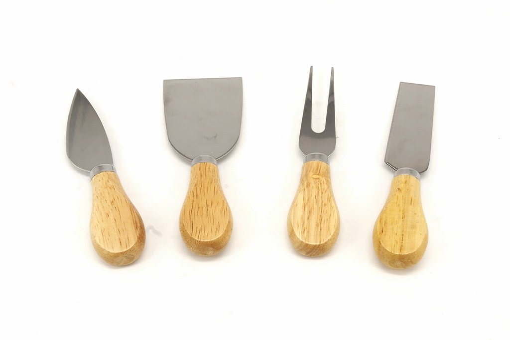 Набор ножей для сыра предназначен для нарезки сыра разной степени твердости. С помощью ножа-вилки очень удобно откалывать, например, выдержанный Пармезан, а нож с широким лезвием и острым углом отлично справится с Грана Падано. В наборе также есть ножи для мягких и голубых сыров. Лезвия ножей для сыра изготовлены из качественной нержавеющей стали. Деревянная рукоять классический формы хорошо и удобно лежит в руке, делает резку любого сыра удобной и безопасной. Ножи превосходно сбалансированы и профессионально заточены.