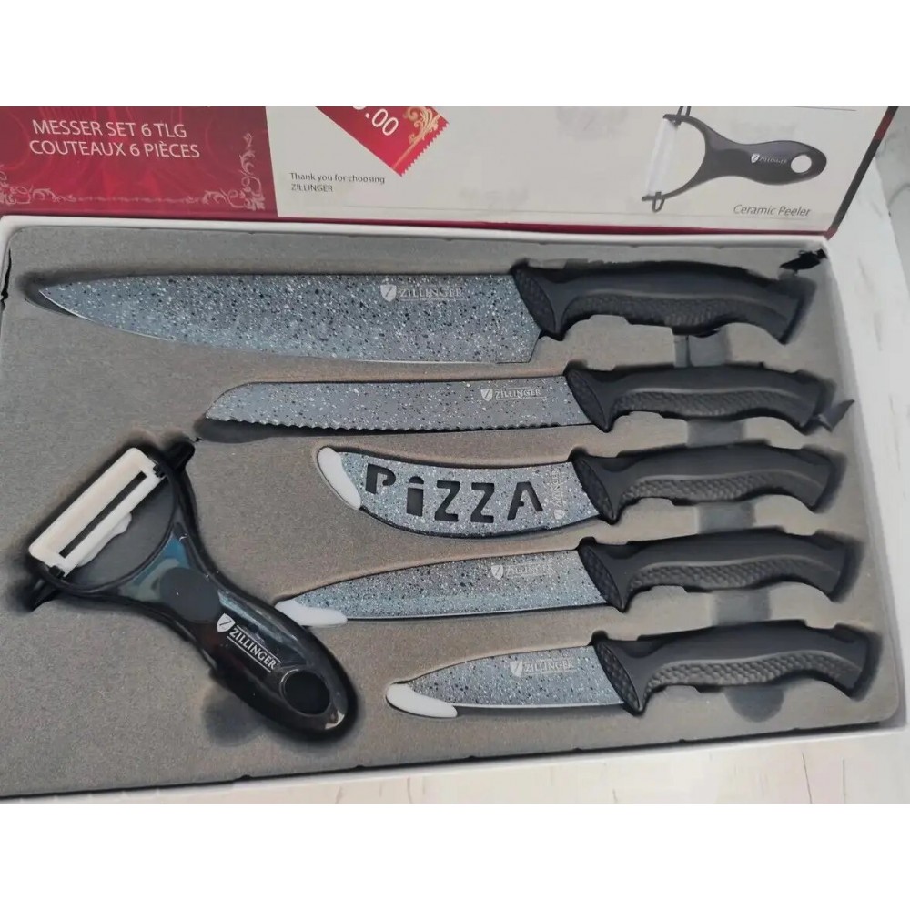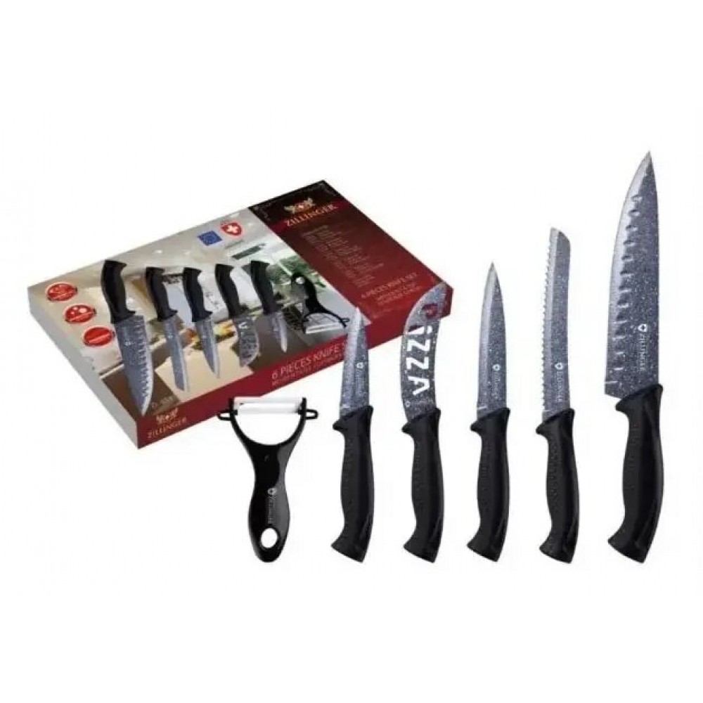 Набор ножей Zillinger ZL-902 обязательно должен быть на вашей кухне, чтобы справляться с нарезкой продуктов быстро и качественно. Лезвия долгое время остаются острыми, после чего быстро затачиваются. Выполнены приборы в едином стиле, ручки контрастно выделяются.