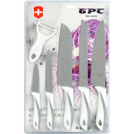 Набір кухонних ножів Tuomea з 6 предметів — ідеальне рішення для щоденного використання на кухні. Леза з нержавіючої сталі 3Cr14Mov відзначаються високою міцністю та довго зберігають гостроту. У комплекті 5 ножів різного призначення та овочечистка, що робить набір універсальним для різних кулінарних завдань. Ергономічні ручки забезпечують зручність у користуванні, а сучасний дизайн додає стилю.