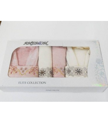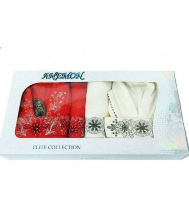 Великолепный набор Anemon kadife из двух халатов и четырех полотенец предназначен для пары и прекрасно подойдёт в подарок молодоженам для отдыха. Изделия выполнены из качественной махры и велюра в Турции. Прекрасная вышивка обрамляет полы халата и полотенца, украшая набор.