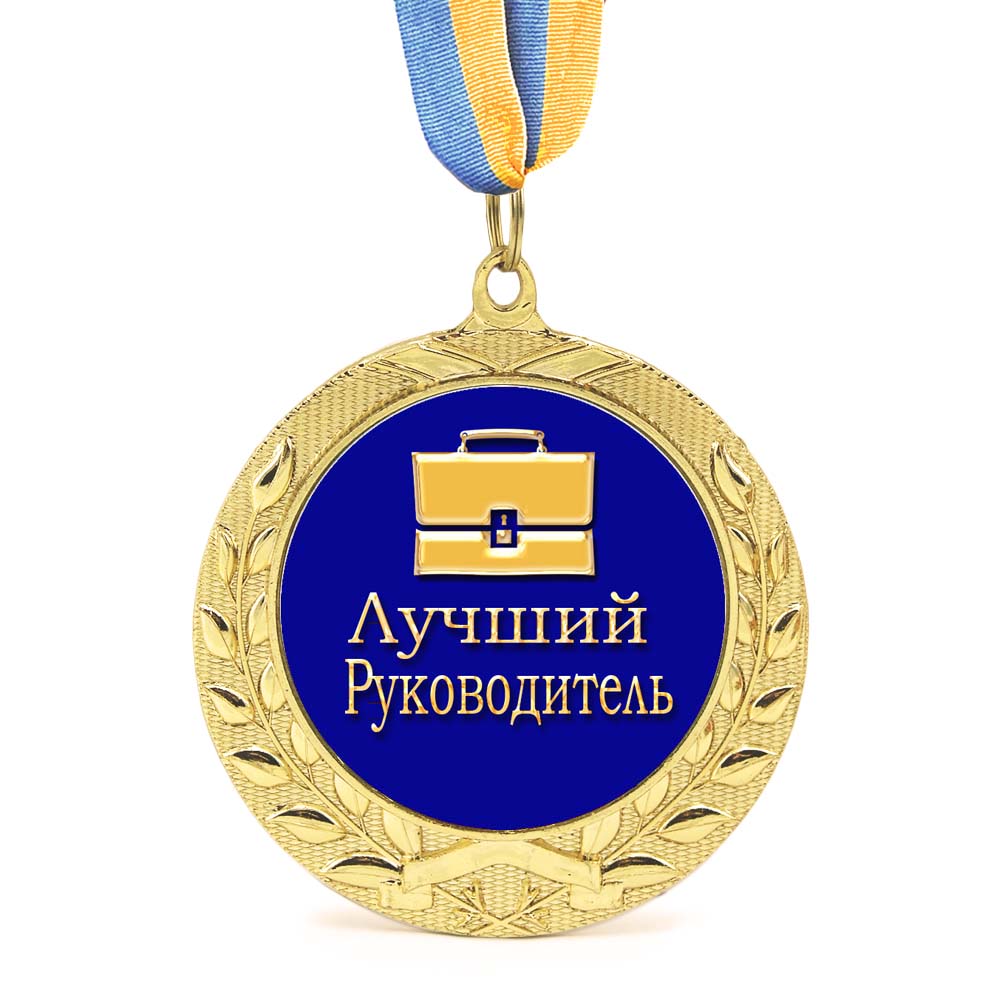 Поскольку давно известно, что лучший подарок от сотрудников это признание заслуг, предлагаем вам презентовать руководителям медаль Лучший руководитель. Оригинальные подарки и сувениры, которые продемонстрируют, насколько вы цените ваше руководство, всегда уместны. Медаль подарочная в золотом обрамлении лавровых листьев - произведет впечатление и несомненно станет отличным подарком на память! Медаль выполнена из сплавов различных металлов с покрытием благородного золотистого цвета нанесенного булатным способом, диаметром 7 см, размером жетона 5см и желто-голубой репсовой лентой длиною 40см, упакована в подарочную коробку из картона. Медаль не подходит для выполнения на ней гравировки. Наш магазин предлагает товары оптом и для дропшипперов, вы можете оформить заказ на сайте Карнавал Приколов и задать любые интересующие вопросы менеджеру, заказав звонок на нашем сайте.