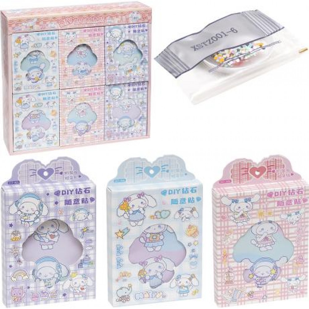 Алмазні наліпки для дітей. З їхньою допомогою дитина може проявити свої творчі здібності, а готову роботу використовувати як прикраси для блокнота, чашки чи іншого предмета. В комплект входить: - основа (2 накліпки) - набір страз, олівець-аплікатор, віск для канардаша, ємність для страз. Упаковано в картонну коробку. Розмір 12 х9,5см