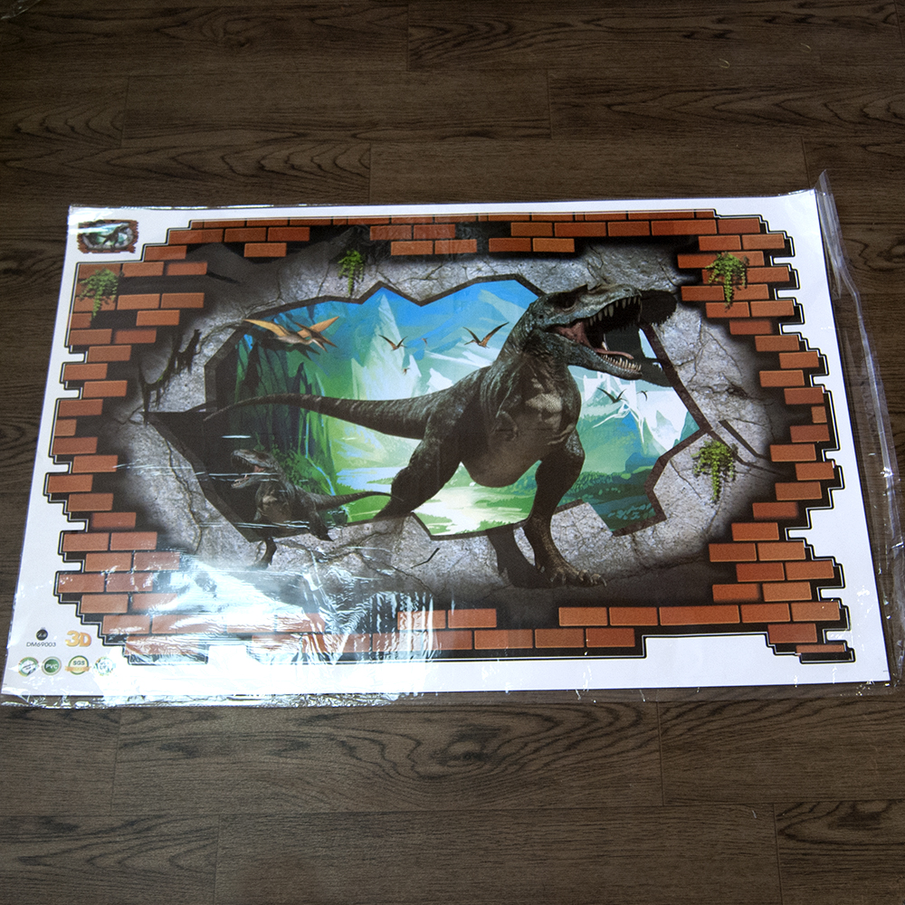 Интерьерная наклейка 3D Динозавр сквозь стену 3D69003 90х60см - это быстрый способ классно украсить свой дом. Интернет-магазин Карнавал Приколов предлогает Вам купить интерьерные наклейки космической тематики, которые идеально подойдут на кухню, спальню, гостиную, детскую или игровую комнату. Украшение на стену оценят дети в своих спальнях или игровых комнатах.Интерьерная наклейка 3D Динозавр сквозь стену 3D69003 90х60смс принтом выбигающего динозавро из мира юрского периода через разрыв в кирпичной стене. Размер листа с наклейками: 60х90 см. Как 3D наклейка клеится на стену ? Способ поклейки очень прост. Для начала необходимо очистить поверхность, на которую необходимо наклееть. После снимаем пленку и переносим рисунок на стену или другую плоскость рукой или ветошью. На какие поверхности можно клеить интерьерную наклейку ? Поклейка возможна на любую ИДЕАЛЬНО ГЛАДКУЮ ГЛЯНЦЕВУЮ поверхность, например : стена окрашенная глянцевой краской без каких-либо рельефов ( в краске не должно быть мелового компонента), стекло, зеркало, лакированные поверхности, гладкий пластик. На обои клеить НЕЛЬЗЯ. Ухаживать за стикерами на стену также достаточно легко, для этого необходимо лишь иногда протирать их влажной губкой или тряпкой. Яркость и насыщенность наклеек не меняется с течением времени, кроме того они абсолютно устойчивы к влажности.