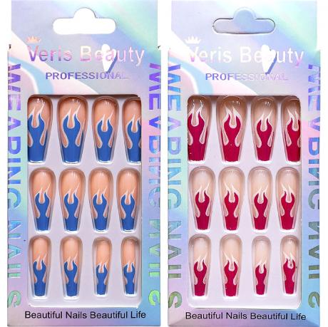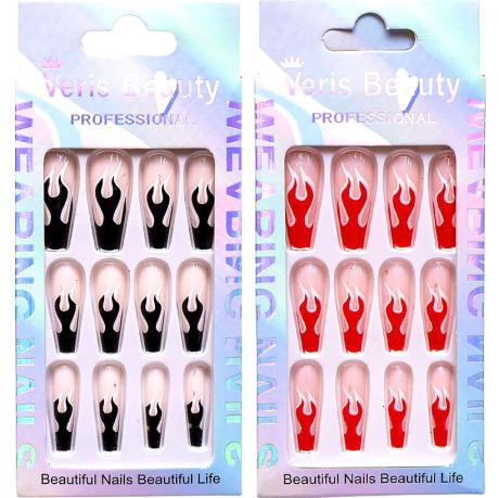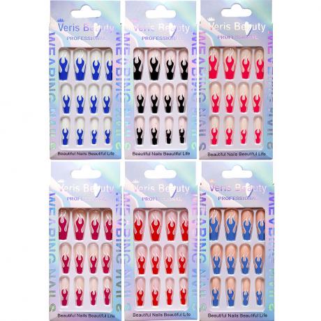 Накладні нігті повторюють форму натуральних, забезпечуючи щільне прилягання, природний вигляд і бездоганний манікюр. Вони кріпляться за допомогою спеціальних клейких пластин, що входять у комплект, що гарантує надійну фіксацію без зайвих зусиль. Ідеальний вибір для стильного образу в домашніх умовах.