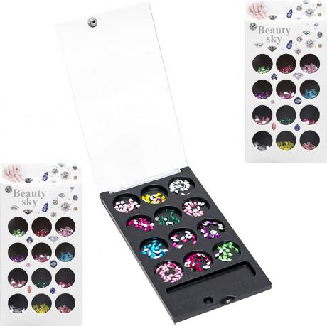 Створіть яскравий та стильний манікюр з набором страз для декорування нігтів! У комплекті містяться стразы 12 різних кольорів, які допоможуть втілити найкреативніші ідеї. Завдяки зручному пластмасовому футляру, стрази легко зберігати та використовувати без зайвих зусиль.
