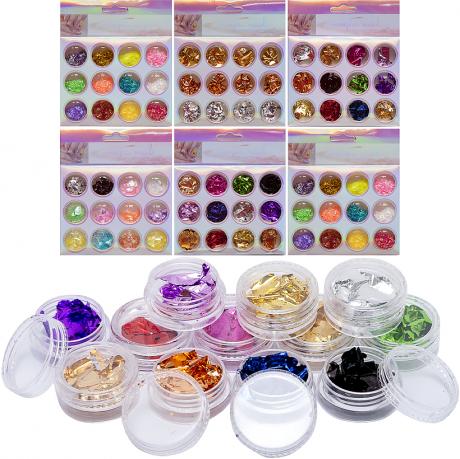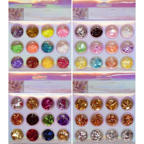 У набір для декорування нігтів входить 12 колб з блискітками для яскравого декору нігтів. Розмір упаковки 9,5*11,5*1,3 см