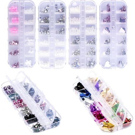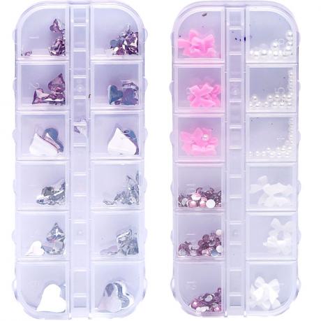 Створіть унікальний манікюр за допомогою набору для декорування нігтів! У пластиковому контейнері з 12 секціями зібрані стильні прикраси.. Завдяки зручному пакуванню матеріали не змішуються та легко дістаються. Підходить як для професійного, так і для домашнього використання.