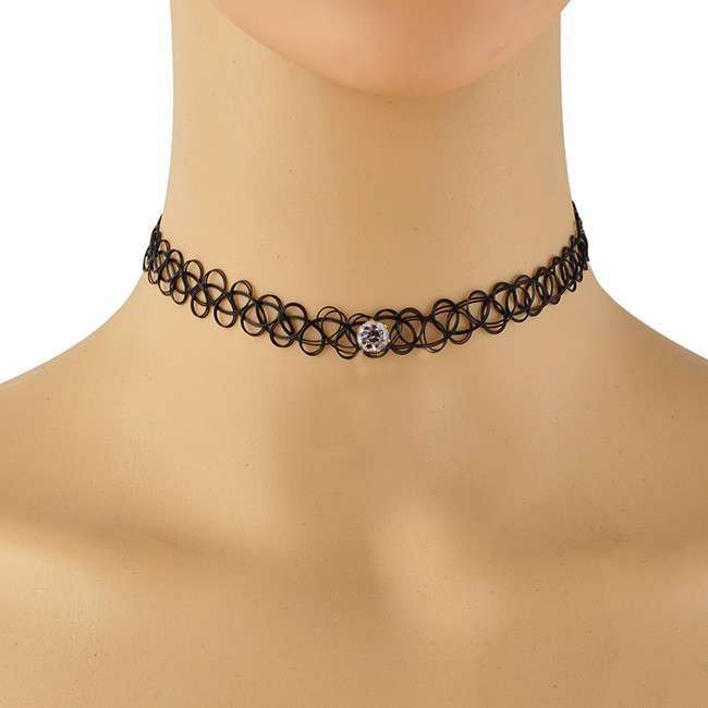 Легендарное украшение 90-х тату чокер (Tattoo Choker) снова в моде. Классический тату чокер, одевается на шею через голову, так как легко тянется благодаря резиновому своему составу, плотно пережимается к шее. Они универсальны и не требуют определенного стиля, одинаково подходят как поклонницам glam rock, так и любительницам сдержанного casual. Изготовлен из качественного пластика. В комплект входит: тату чокер со стразами на шею, браслет со стразами и кольцом.