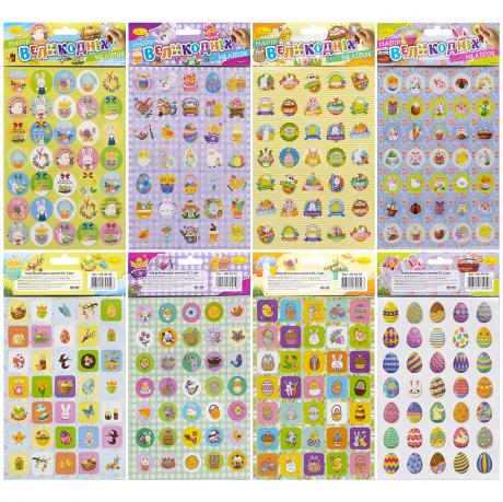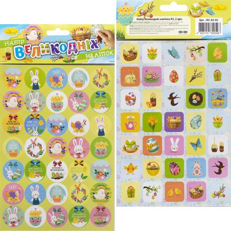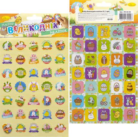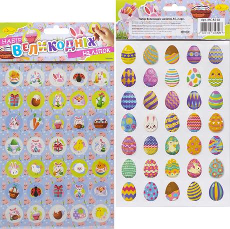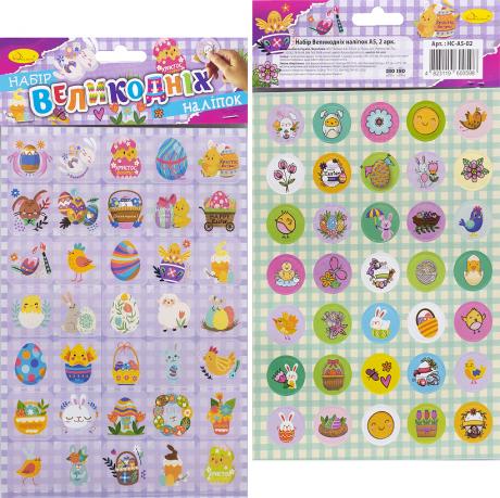 Набір наклейок "Великодніх" формату А5, містить 2 листи. Розмір кожного листа 14,8 см на 20,5 см.