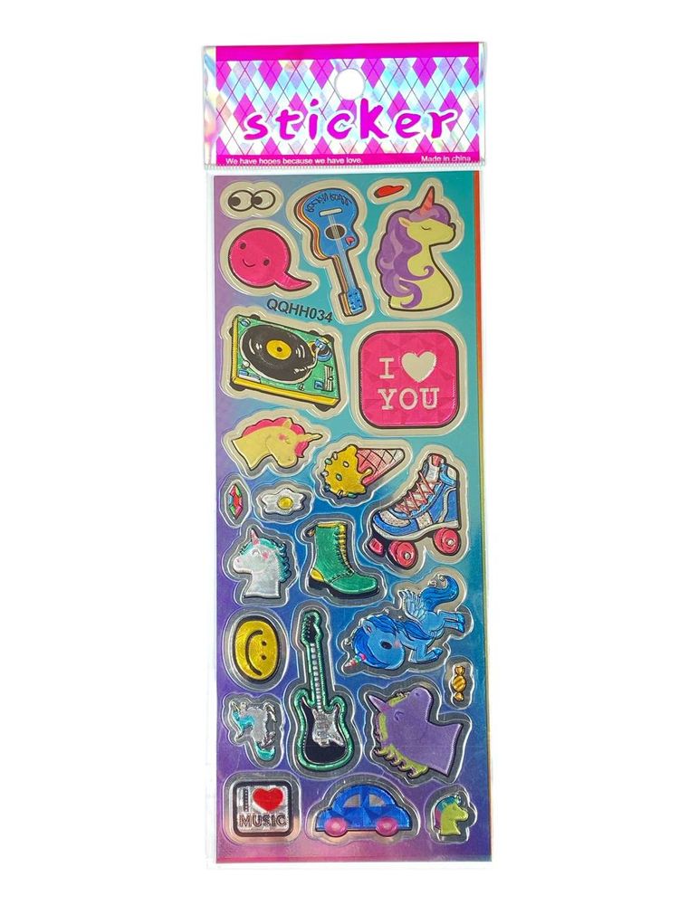 Наклейка пластиковая рельефная флуоресцентная, 10 х 30см Единороги и Дельфины (Y-Q007)