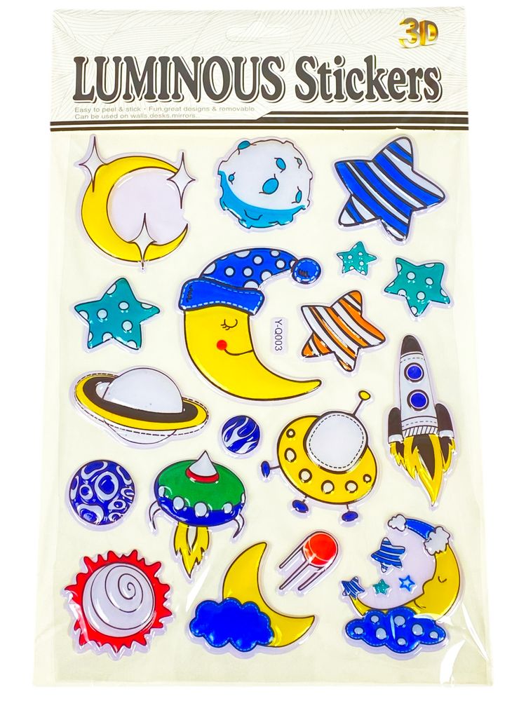 Наклейка пластиковая рельефная флуоресцентная, 10 х 30см Звезды и луна (Y-Q003)