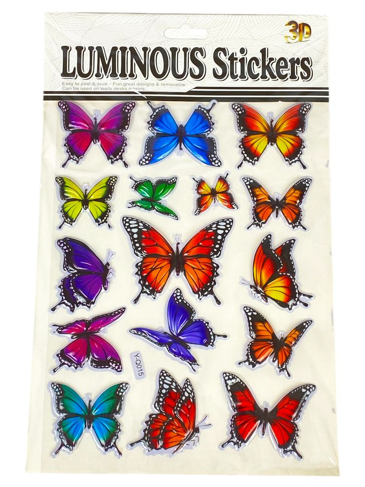 Наклейка пластиковая рельефная флуоресцентная, 10 х 30см Бабочки (Y-Q015)