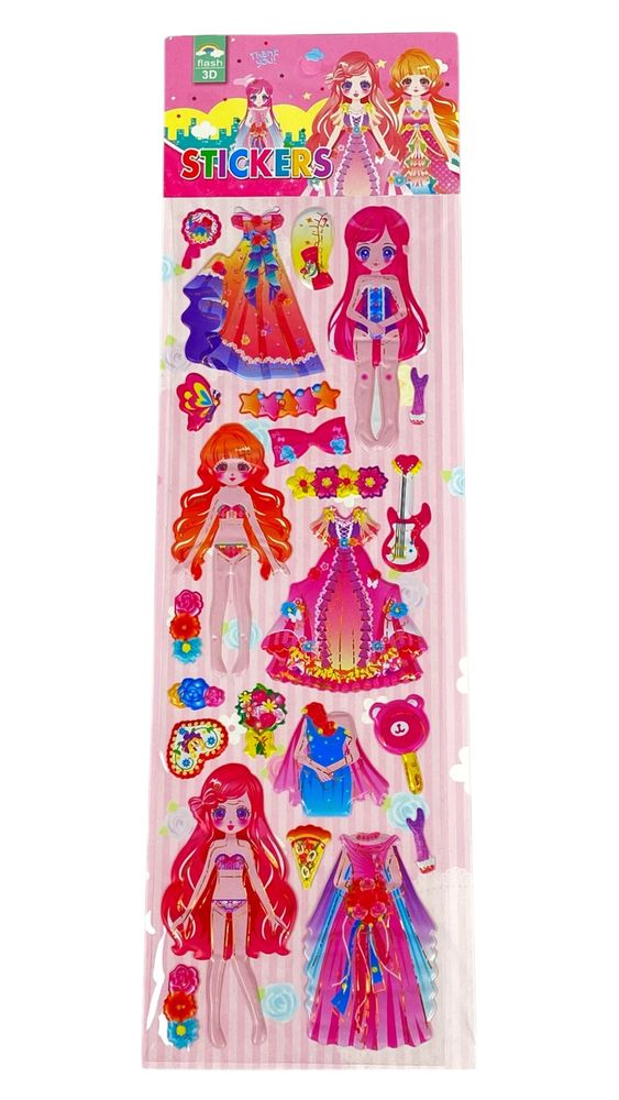 Наклейка пластиковая рельефная флуоресцентная, 10 х 30см Единороги и Дельфины (Y-Q007)