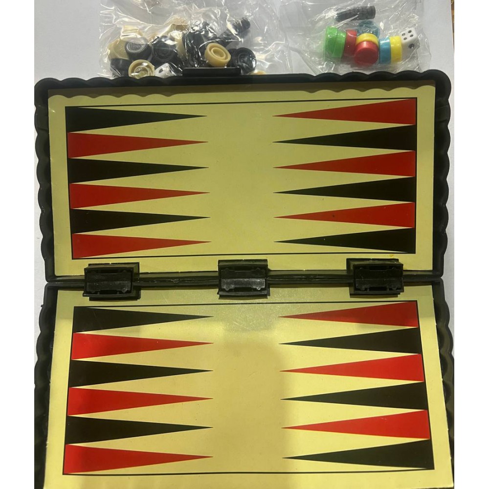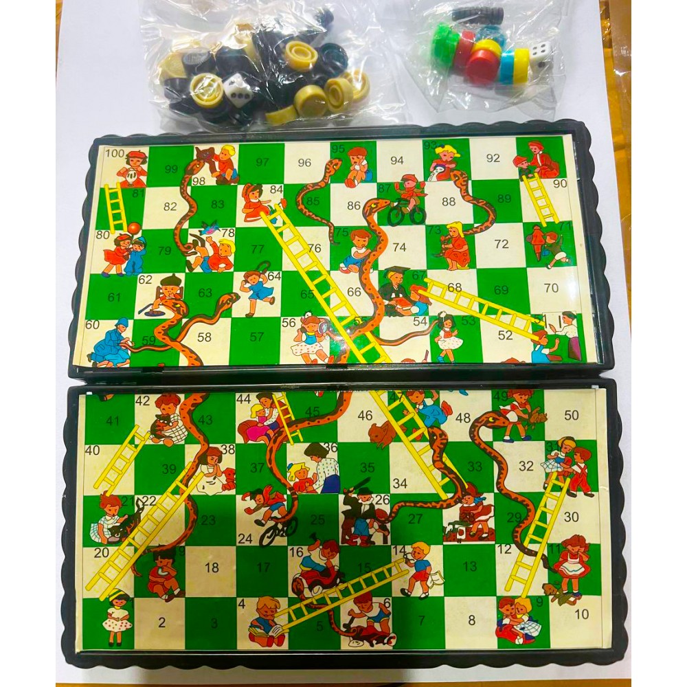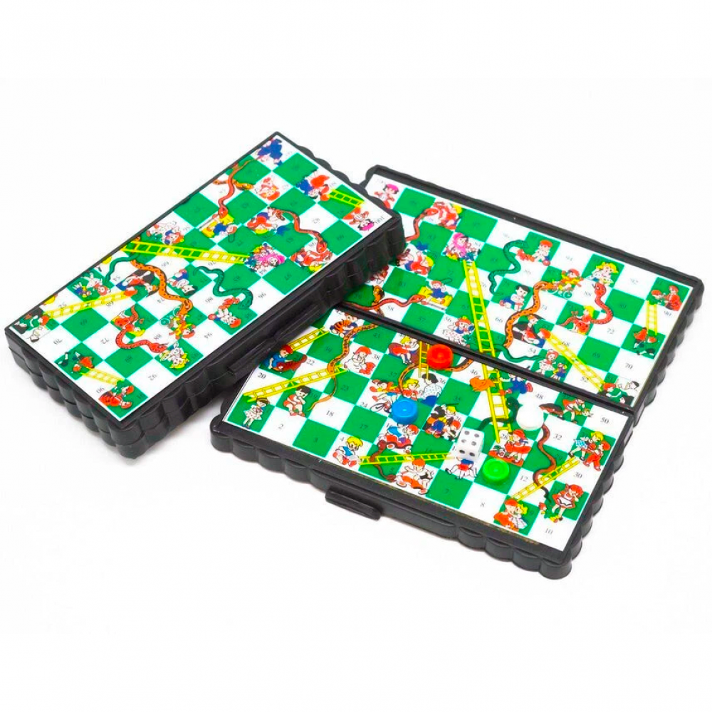 На одной стороне — весёлая игра “Змейки и лестницы”, развивающая внимание, логику и реакцию. На другой — классические нарды, тренирующие стратегическое мышление и терпение.