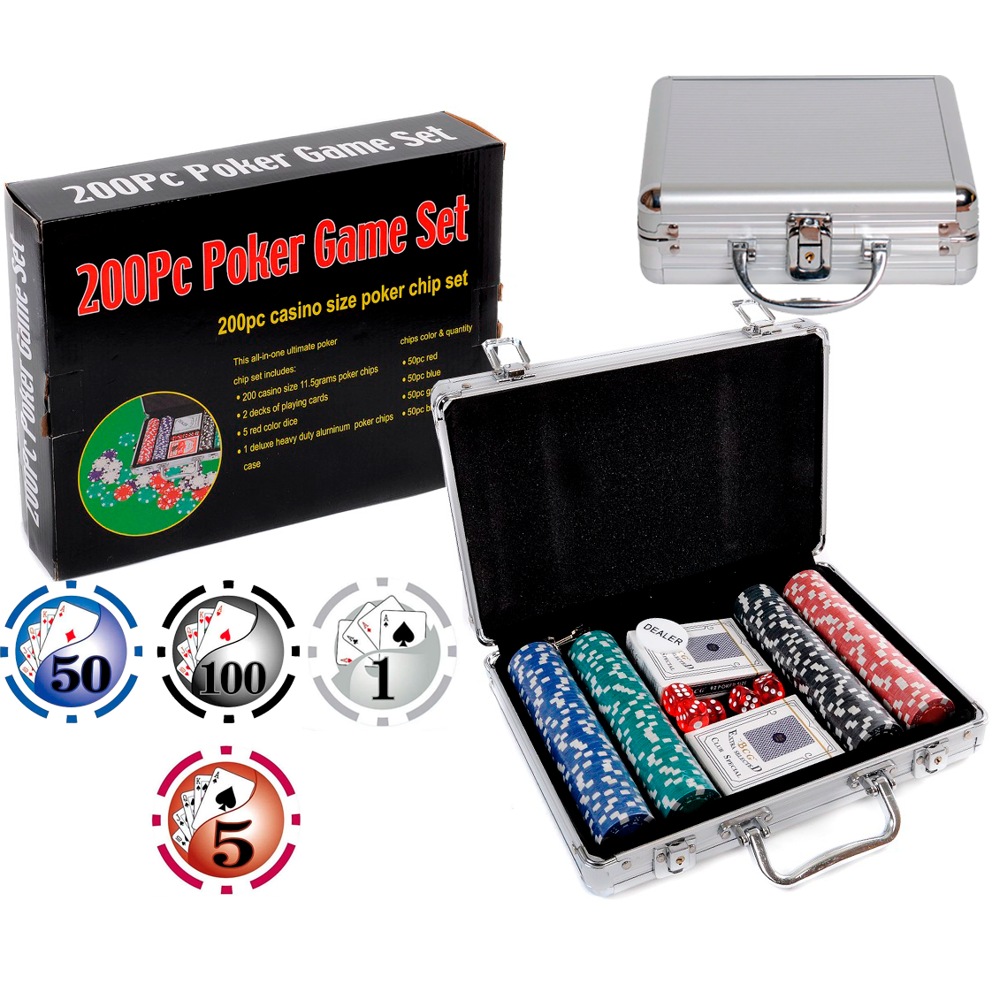 Фишки: 200 шт. (пластик с металлическим сердечником, 11,5 г)