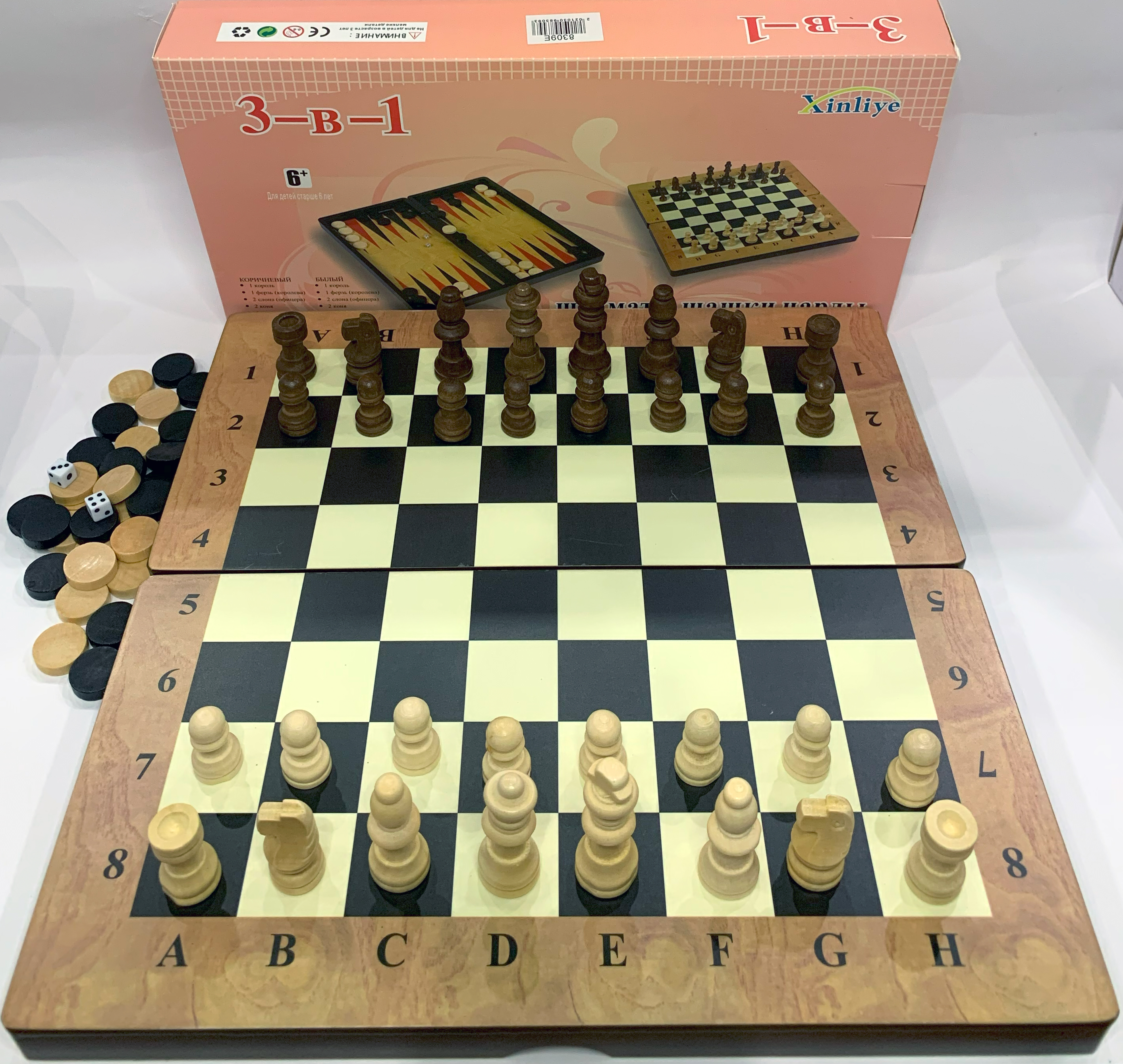 Игровой набор 3в1 нарды шахматы и шашки