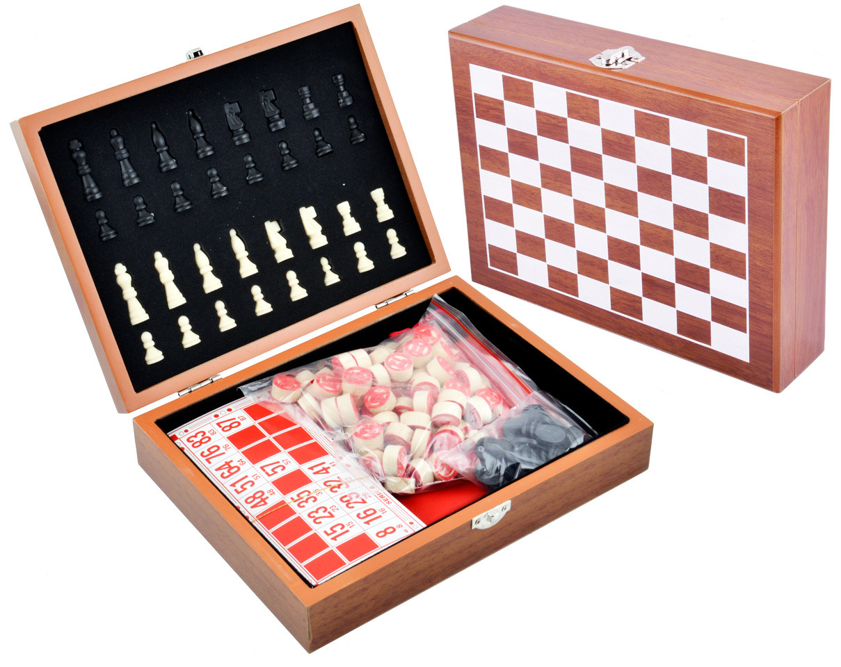 Игровой набор шахматы/лото, деревянная коробка 2519 Размер: 285х185х60мм