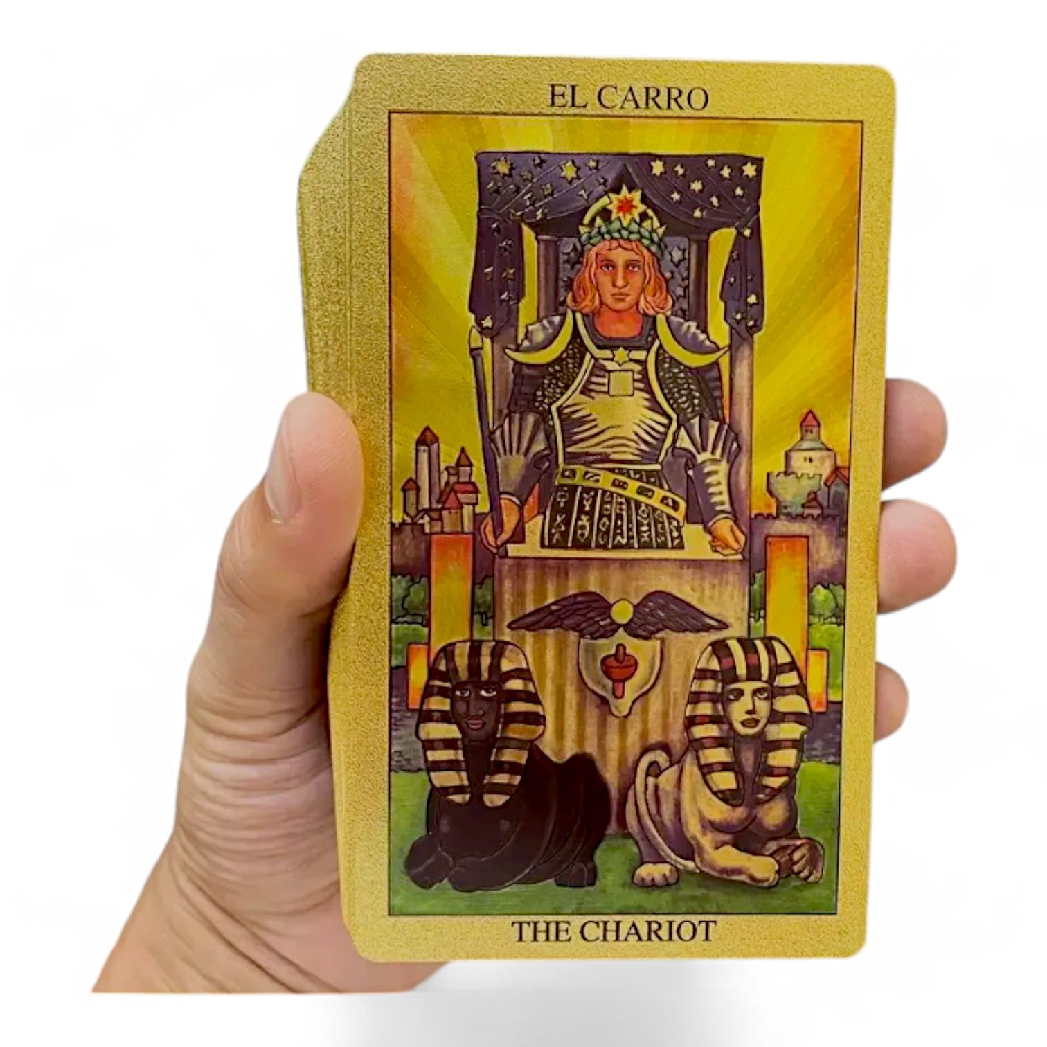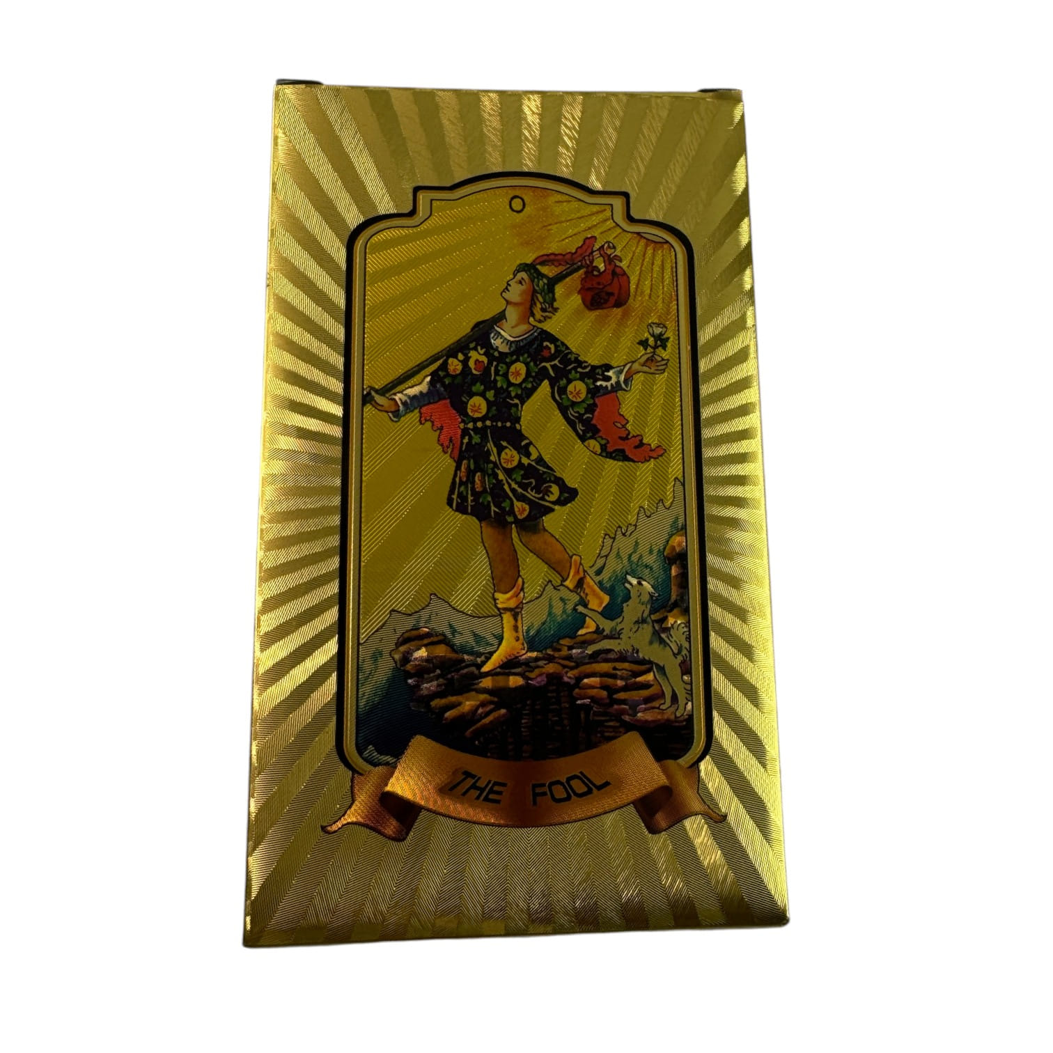 Золотистое покрытие придает картам роскошный вид, создавая уникальную атмосферу во время работы с колодой.