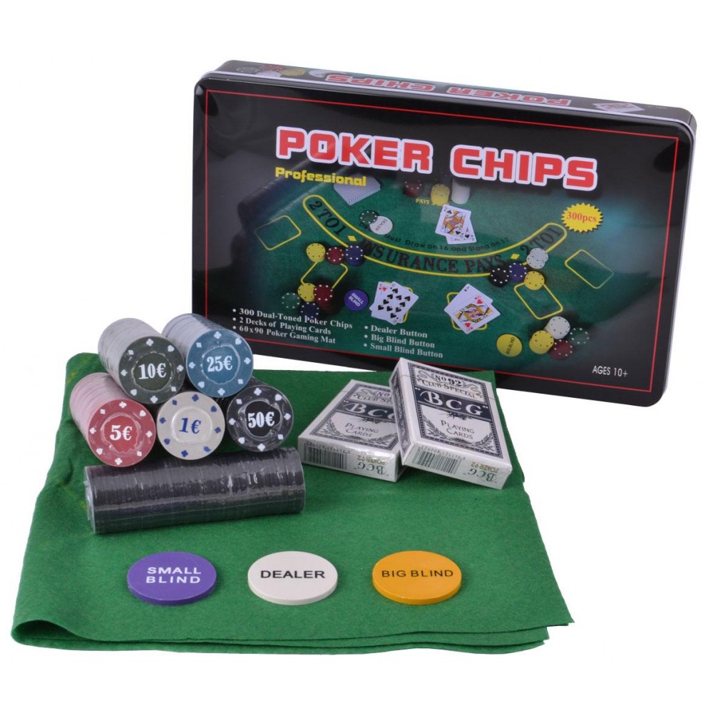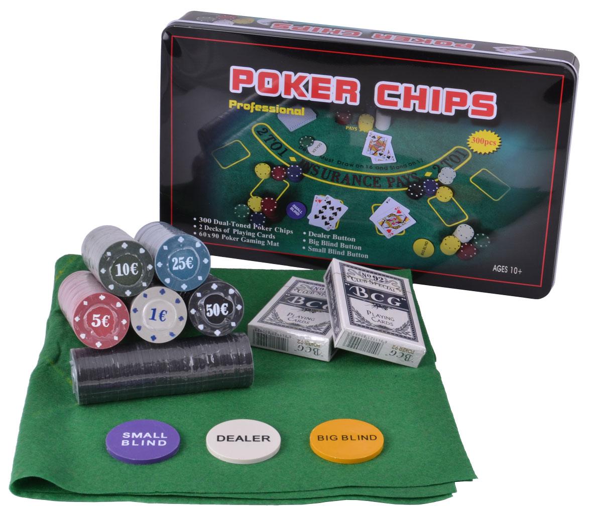 Набор для покера 300 фишек с номиналом в металлической коробке