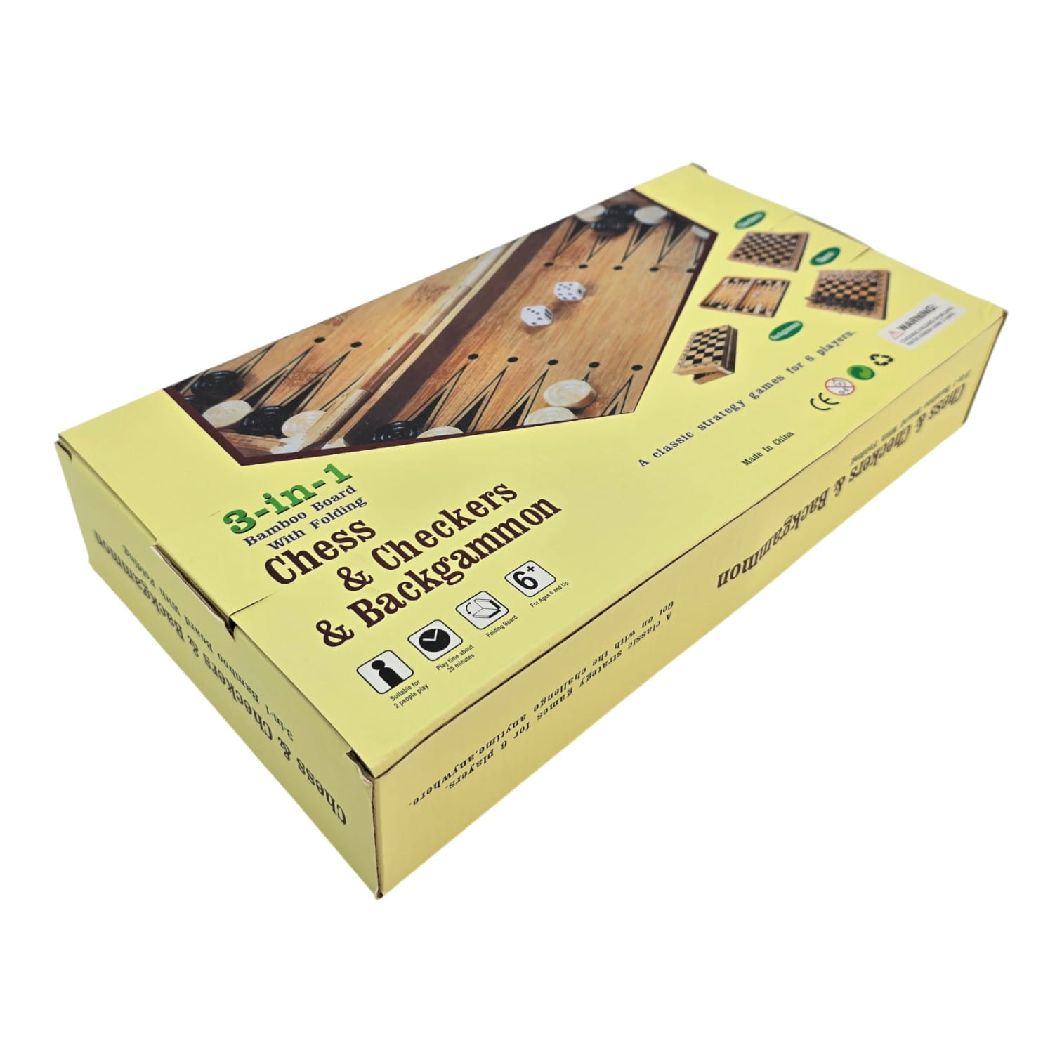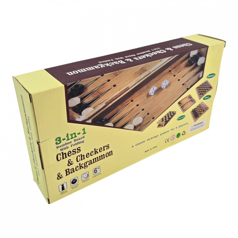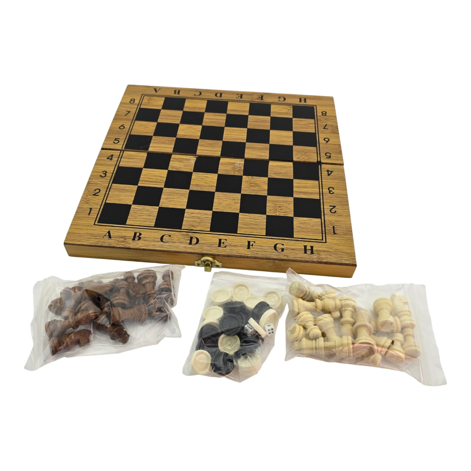 шахматы, шашки, нарды, набор 3 в 1, складная доска, бамбуковая доска, шахматный набор, фишки нард, настольная игра, дорожный набор, семейная игра, подарок