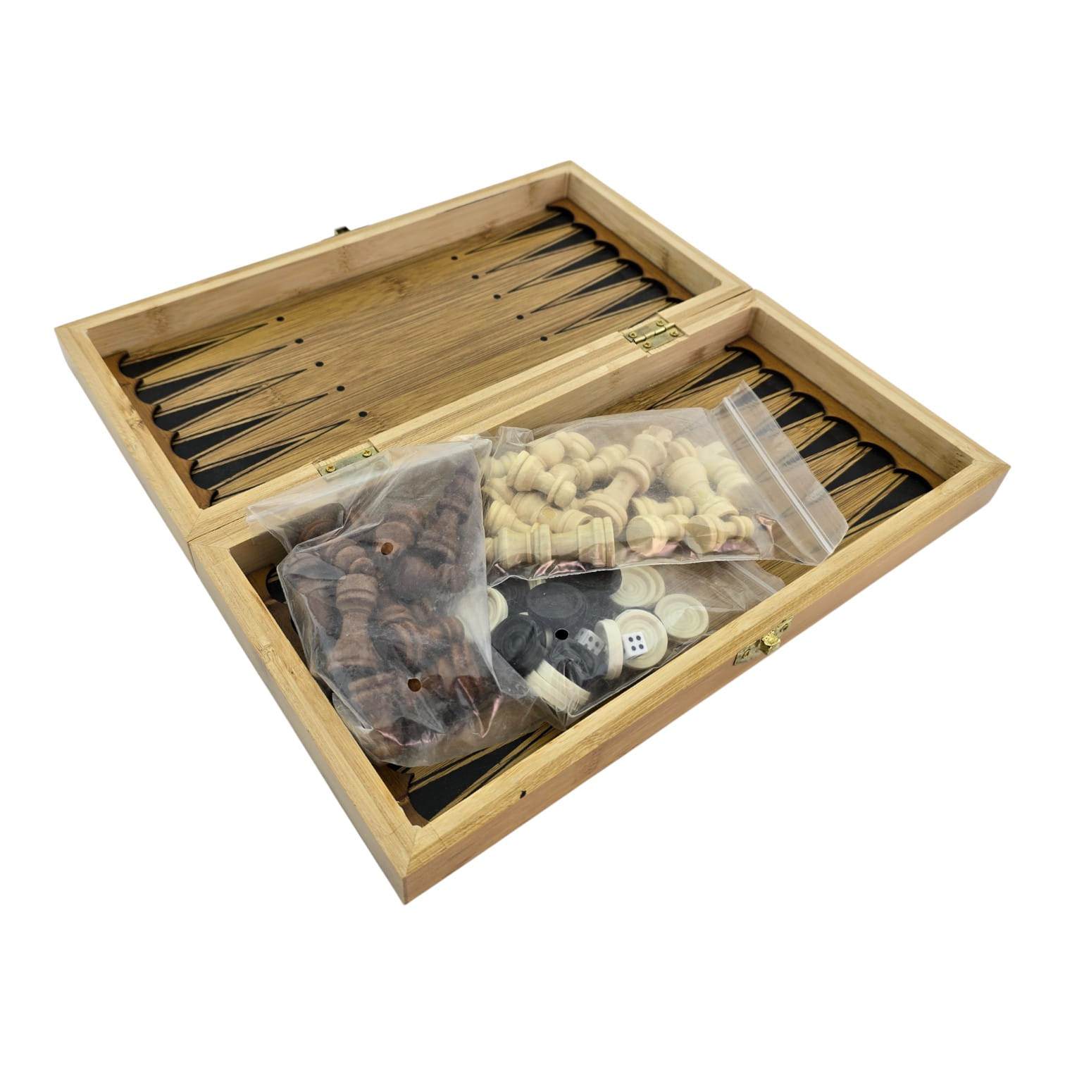 Набор настольных игр 3 в 1 Шахматы Шашки Нарды бамбуковая доска 29 см