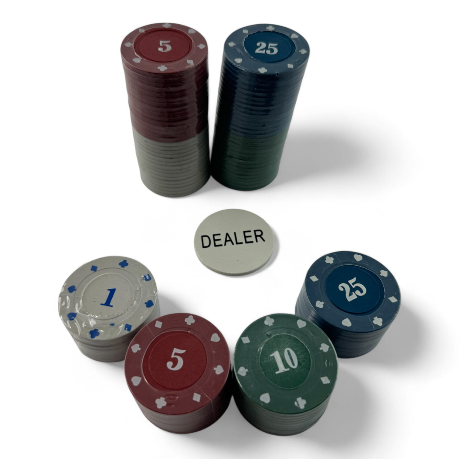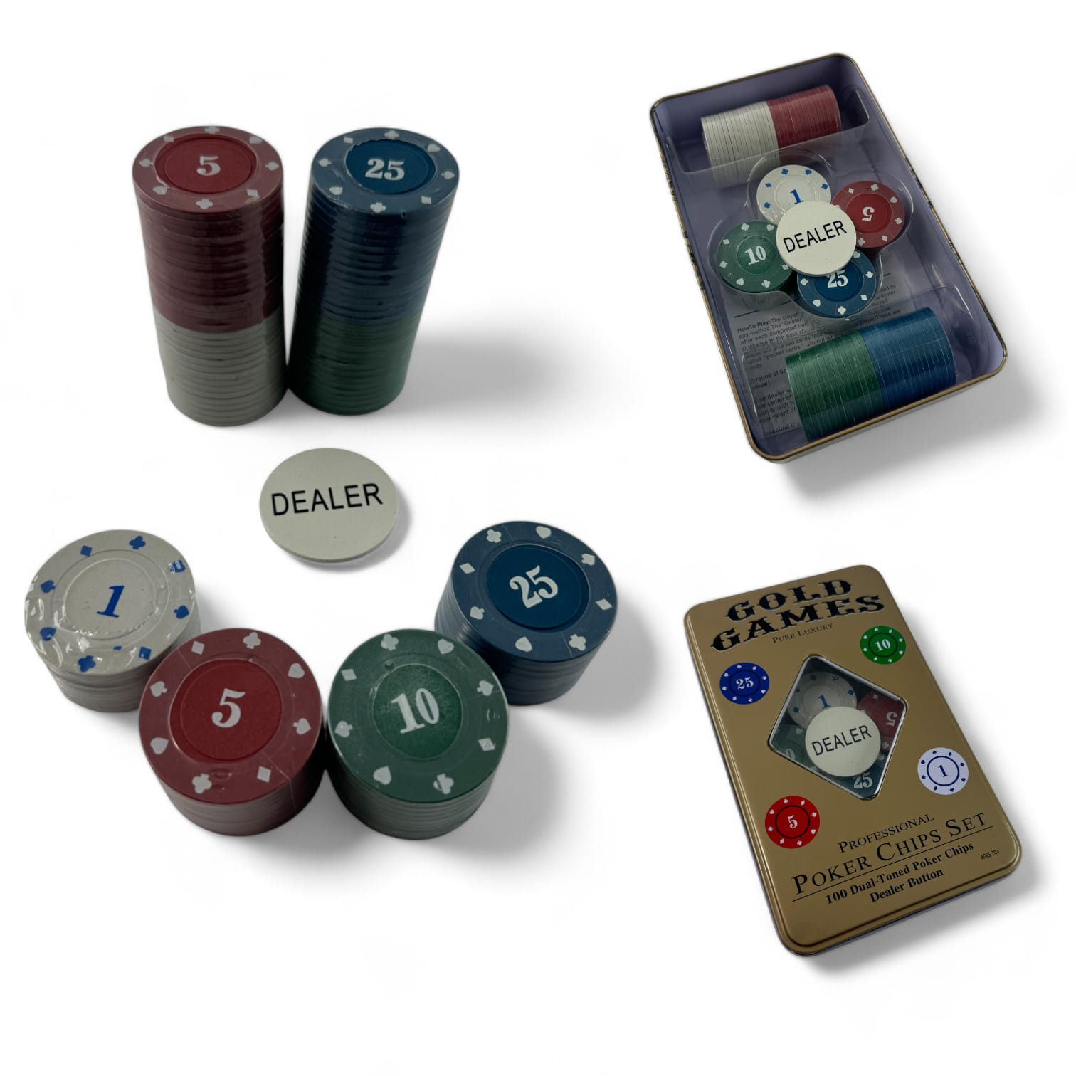 Количество фишек: В набор входит 100 фишек, что идеально подходит для небольших домашних игр.