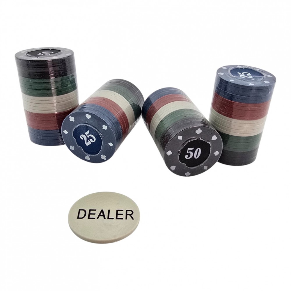 Комплектация: 100 фишек, фишка дилера 1 шт