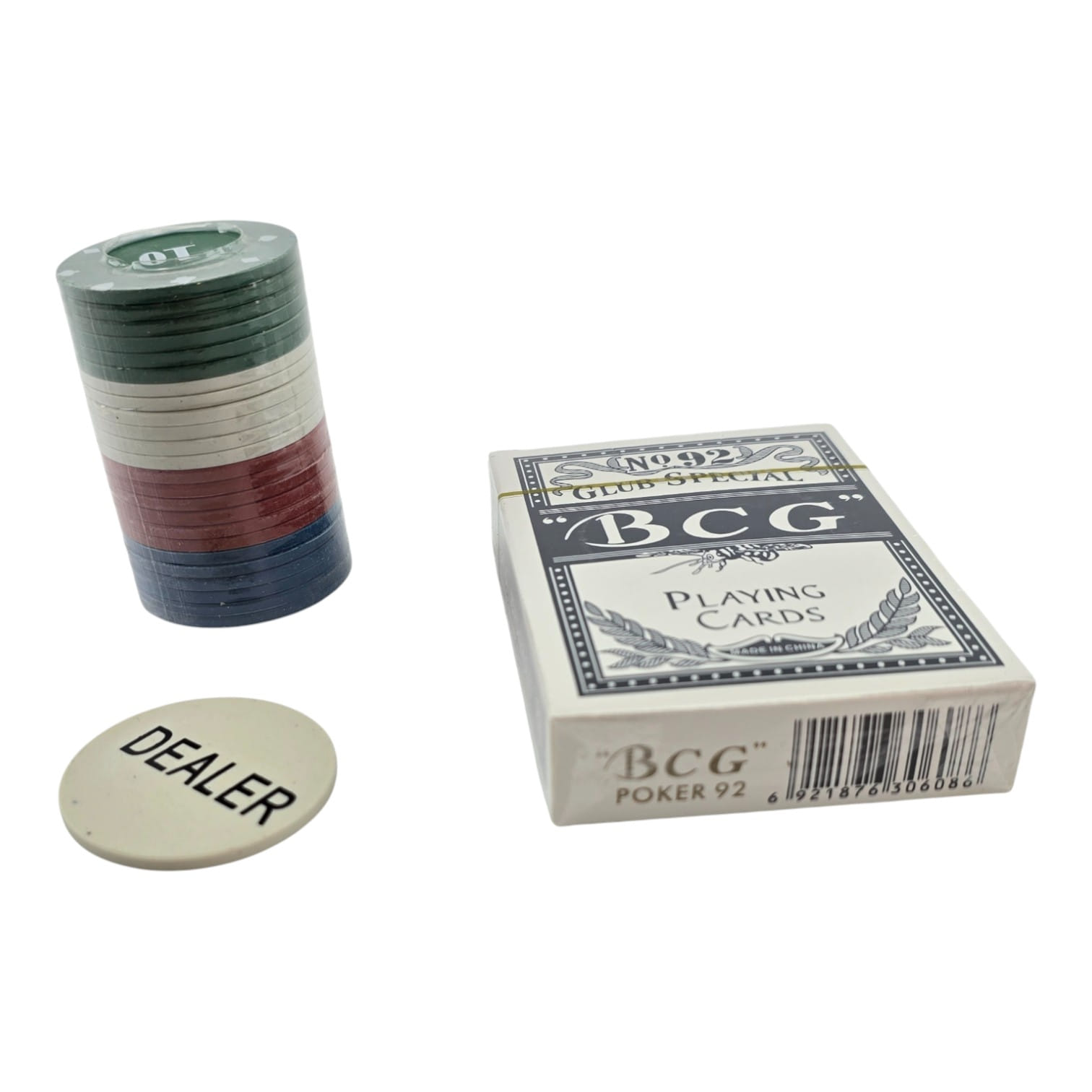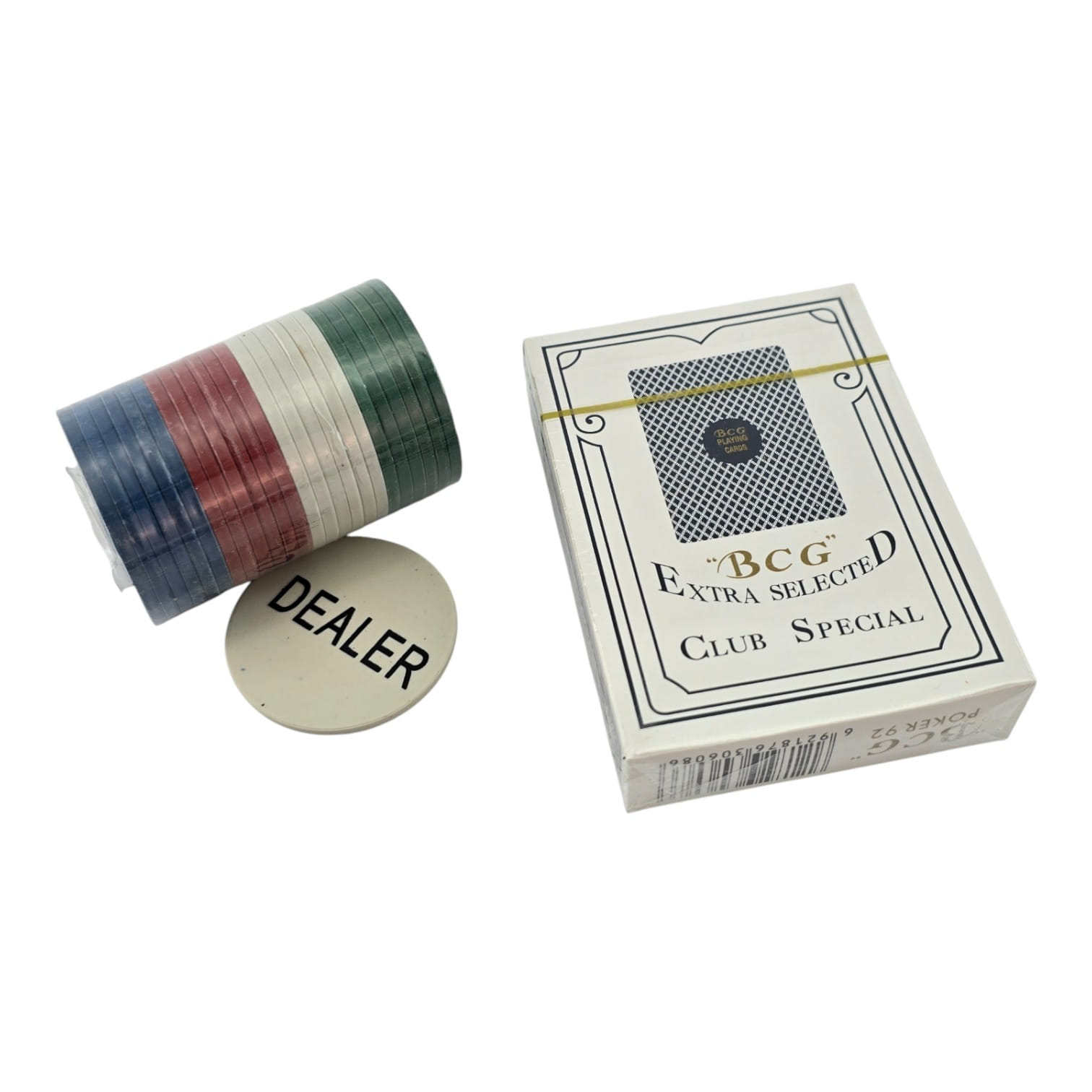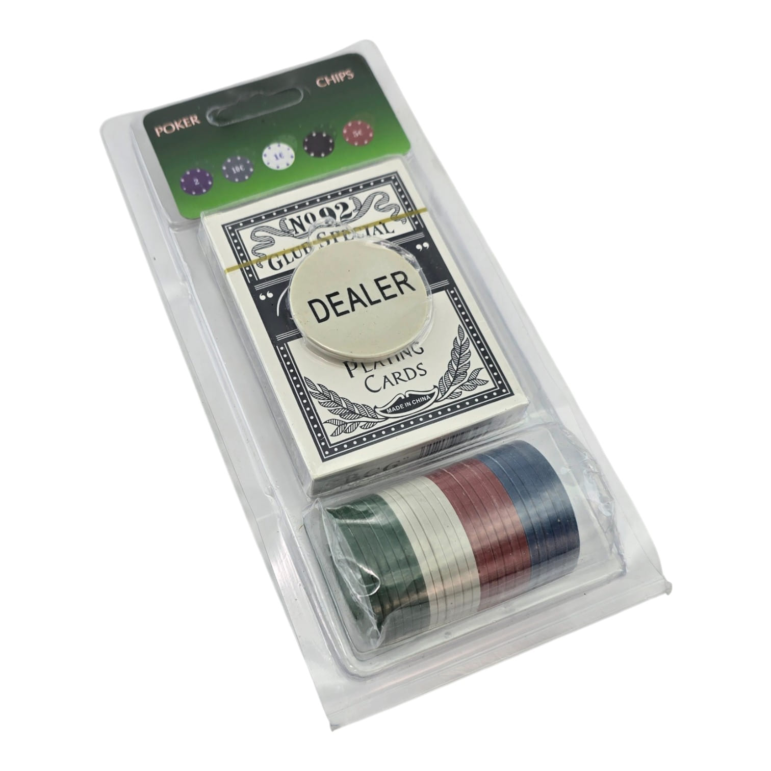 Комплектация: фишки 40 шт + колода 54 карты + жетон Dealer 1 шт