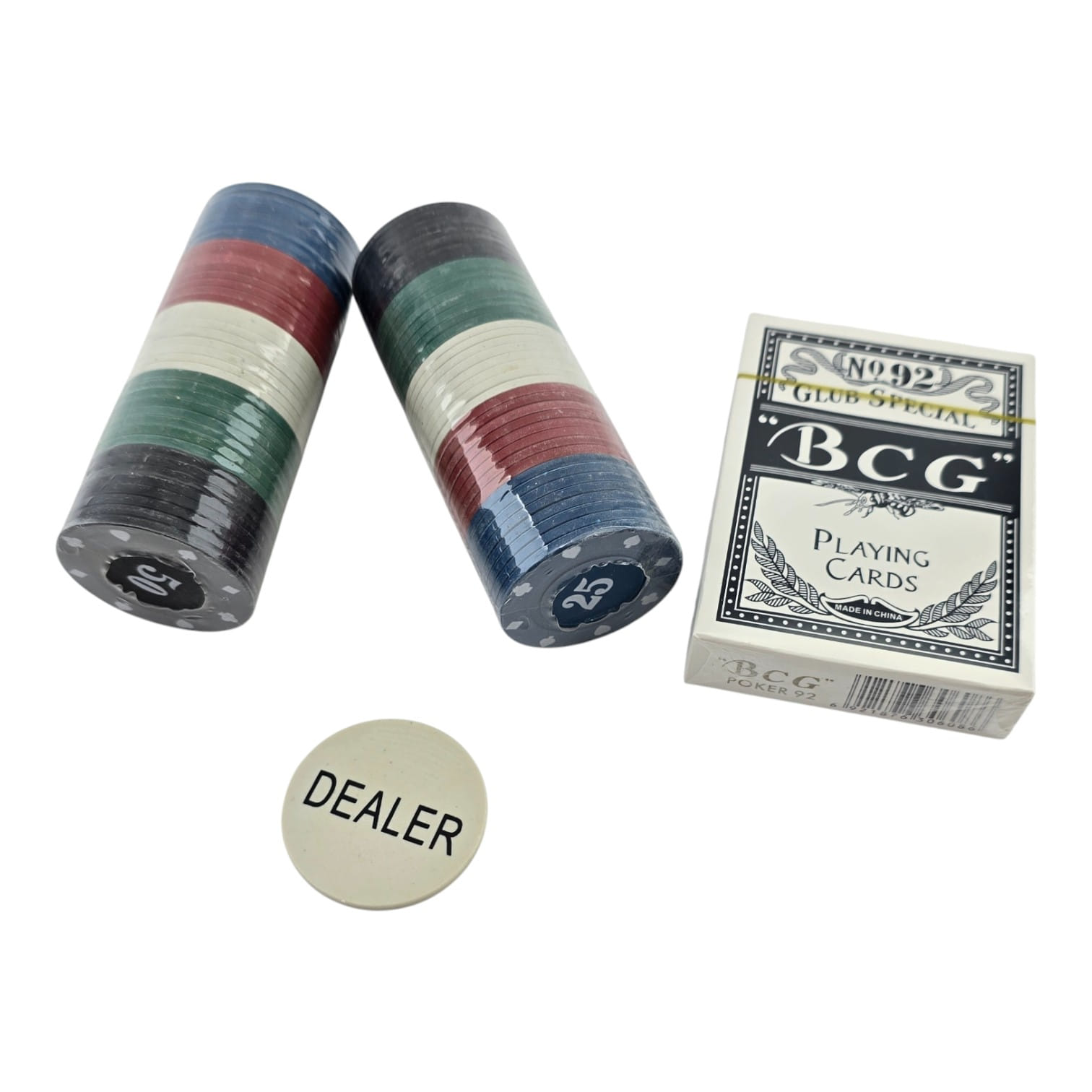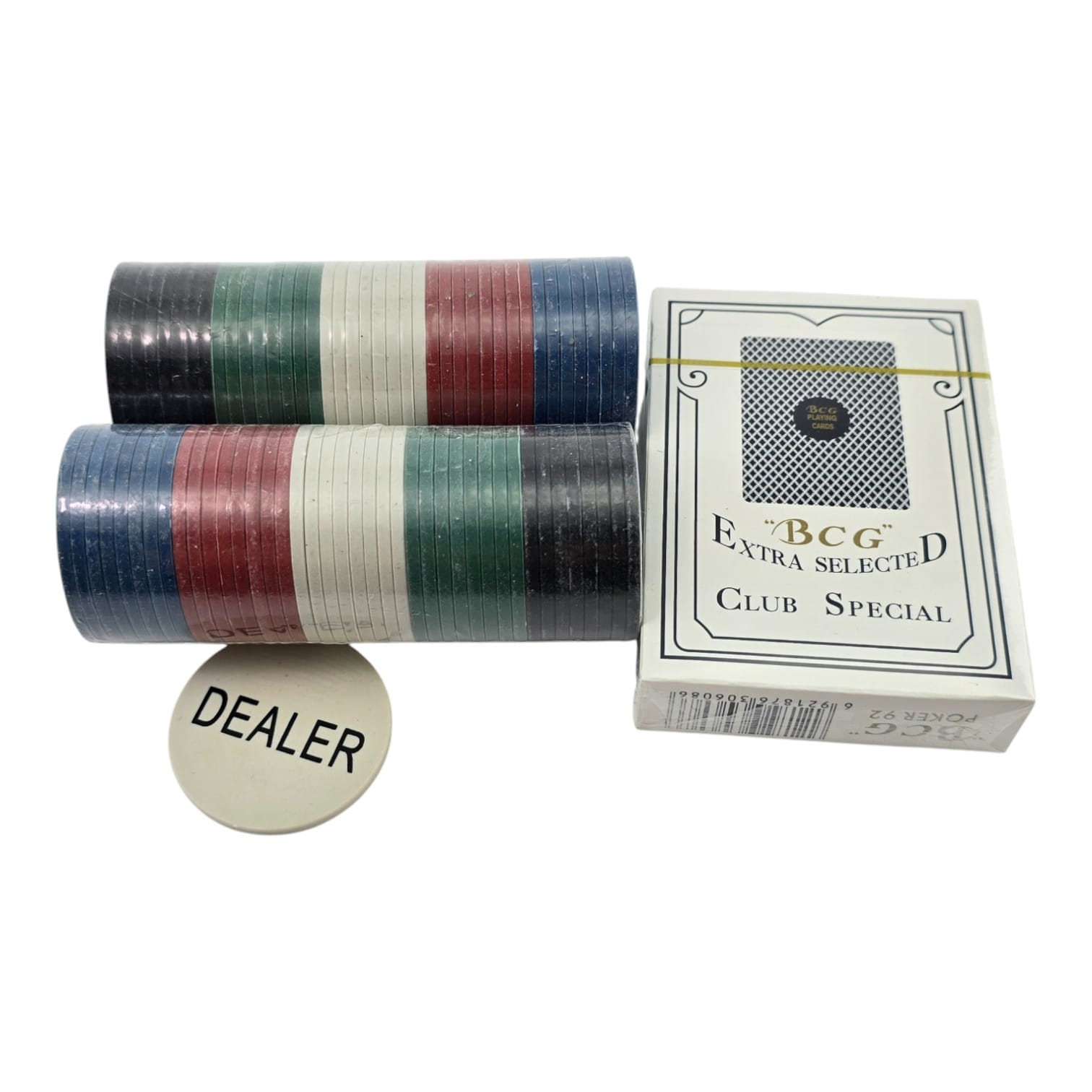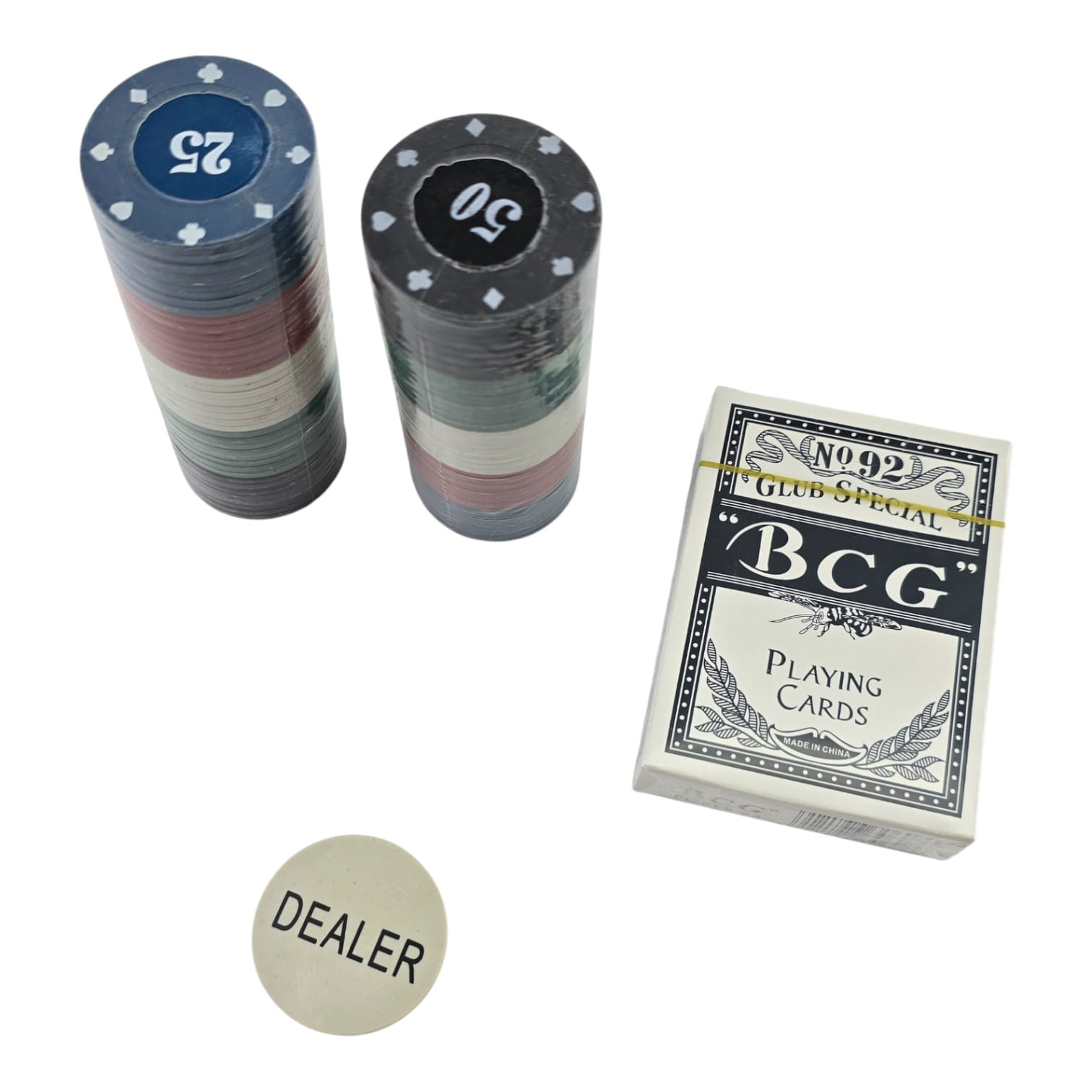 Комплектация: фишки 80 шт, колода карт 1 шт, жетон дилера 1 шт