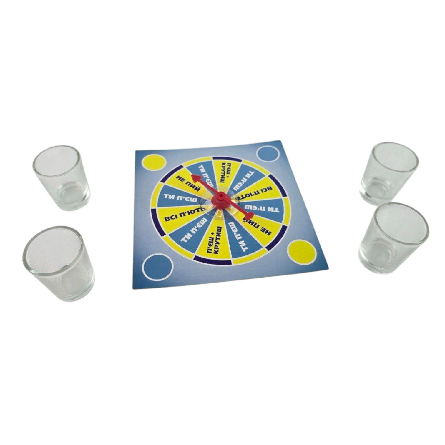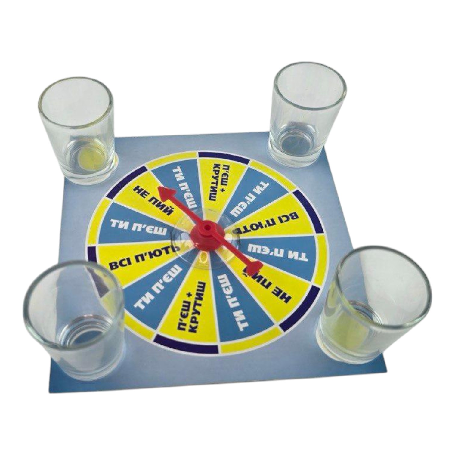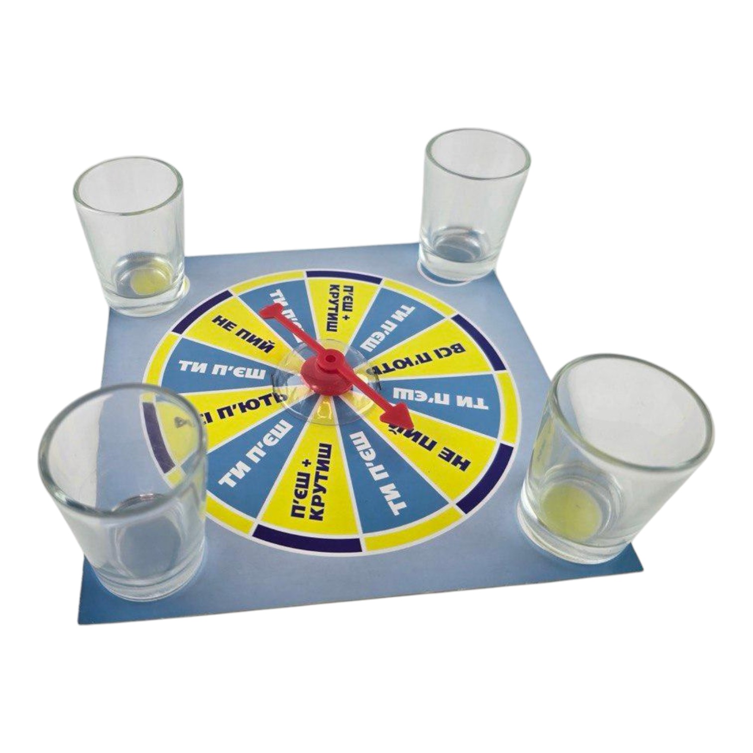 Игровой набор "Крути и пей" - это идеальный способ добавить веселье и развлечение в вашу компанию из 4 человек. Этот оригинальный набор станет отличным дополнением к вашим вечерам веселья, добавляя в них неповторимый шарм и азарт.