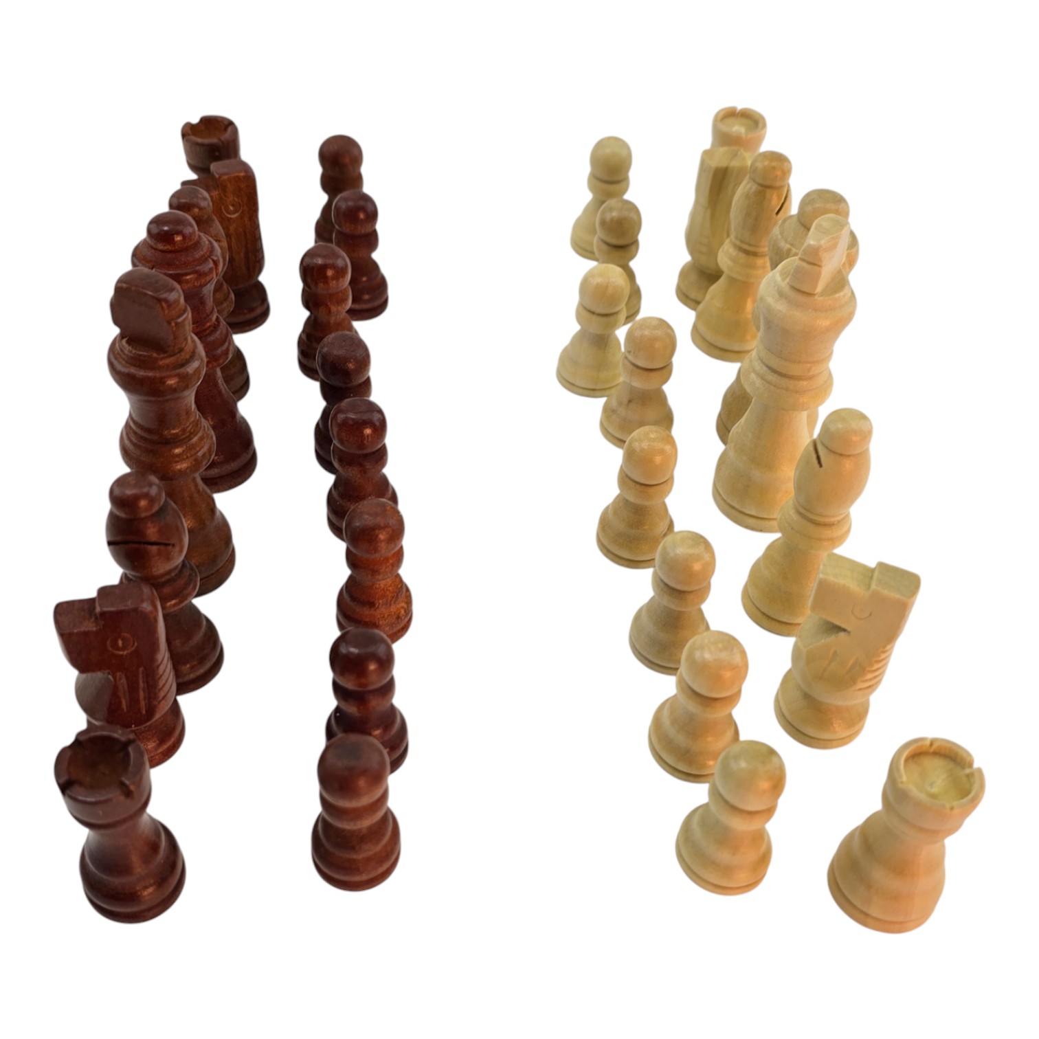 Фигуры хорошо лежат в руке, устойчивы благодаря ровному основанию и подойдут как для замены утраченных элементов, так и для самостоятельного комплекта шахмат.