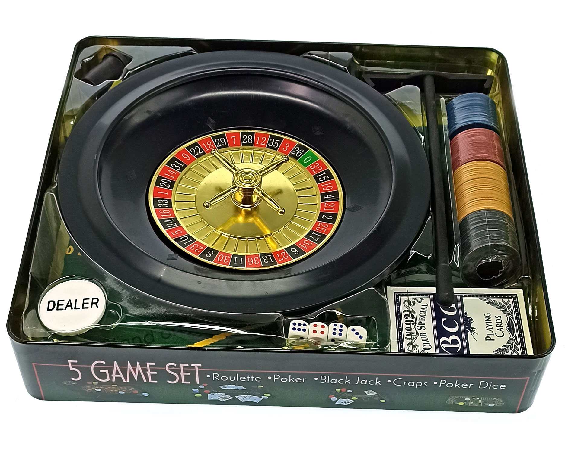 Покерный набор + рулетка (5 в 1)(33х29х7 см)(вес фишки 4 гр. d-39 мм)
