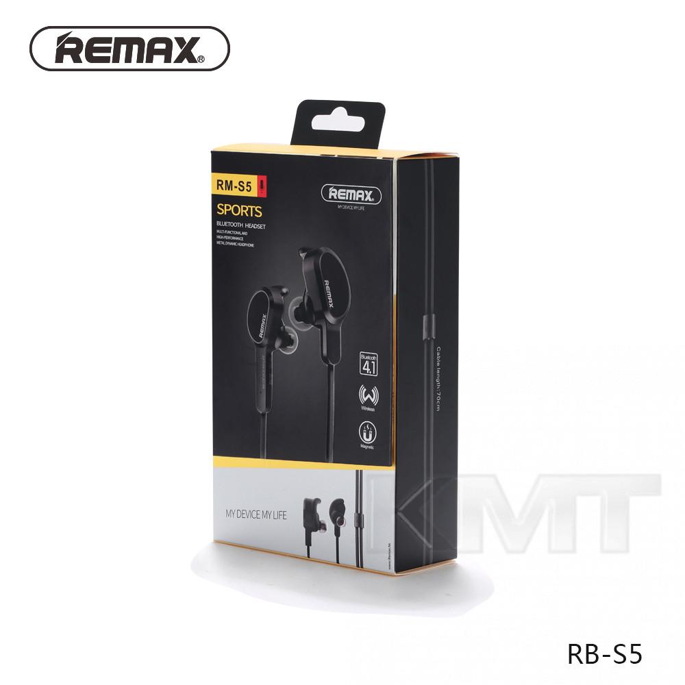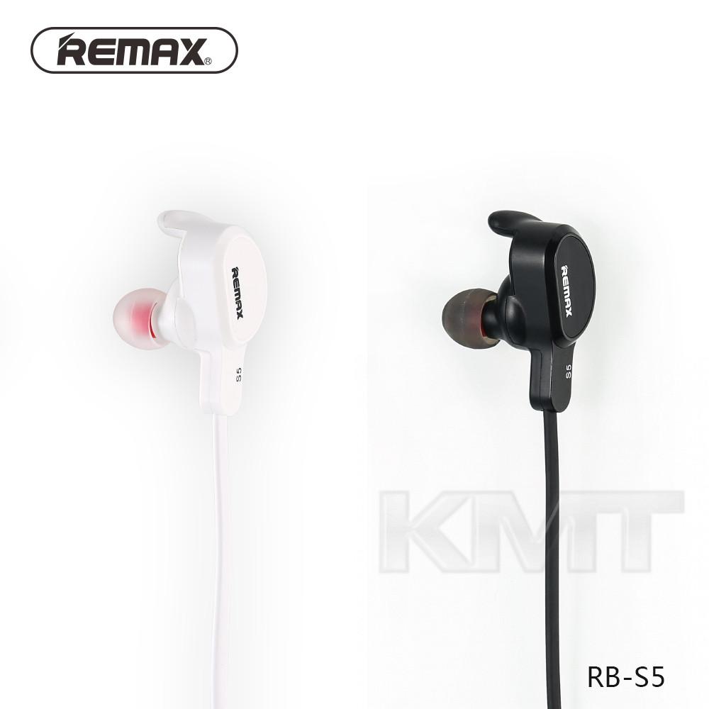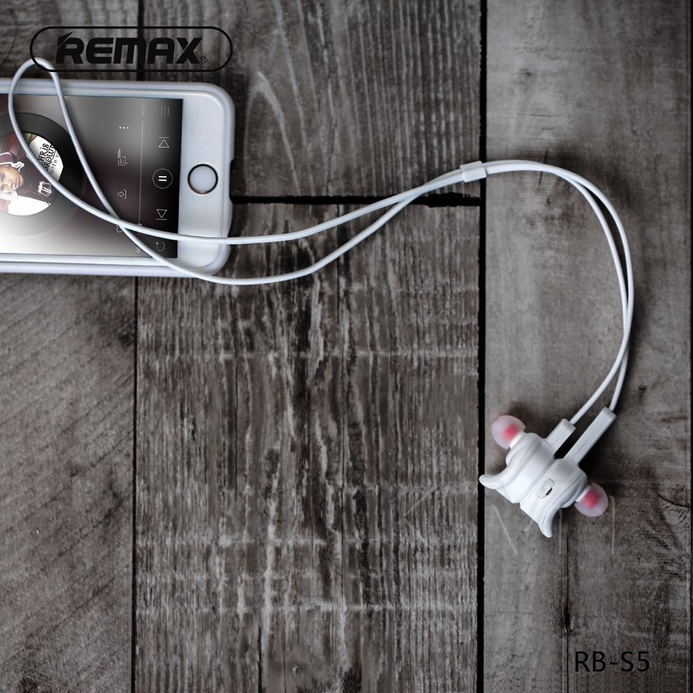 Стерео блютуз гарнитура REMAX RB-S5 -неотъемлемый атрибут любителей активного образа жизни, меломанов, которых всегда сопровождает музыка. Комплектуется оригинальной упаковкой в стильном дизайне. Время работы гарнитуры в режиме разговора 5 часов, при этом процесс зарядки занимает до двух часов. Устройство оснащено микрофоном, ушные элементы гарнитуры удобны в ежедневной эксплуатации. В комплекте вакуумные вкладыши нескольких размеров. На одном из наушников расположены кнопки принятия вызова и регулировка громкости. Практичным дополнением является примагничивание ушных элементов друг ко другу. Наушники со встроенным аккумулятором заряжаются через micro-usb кабель, идущий в комплекте.