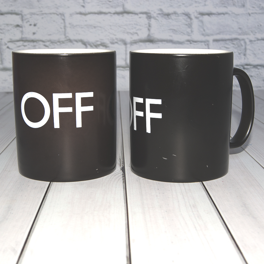 Вы не знаете, что подарить парню, перебираете в голове варианты, но так ни на чем не останавливаетесь? А нужно подобрать подарок практичный и оригинальный? Или Ваша главная фишка - это креативные подарки, которые Ваши друзья еще долго вспоминают. Тогда необычным подарком станет чашка OFF ON, изменяющая расцветку и написанные на ней слова под действием горячего напитка. Когда в кружку наливается чай или капучино с температурой 70 градусов и выше, черный фон поменяется на белоснежный, а OFF переключится на ON. Вы так неохотно встаете утром из своей тепленькой постели чтобы идти на работу? Тогда чашка OFF-ON подбодрит, и поможет включиться. Купите чашку в интернет-магазине Карнавал Приколов, и она станет подарком для каждого, кому необходимо, но сложно вставать по утрам. Данный товар возврату и обмену не подлежит.